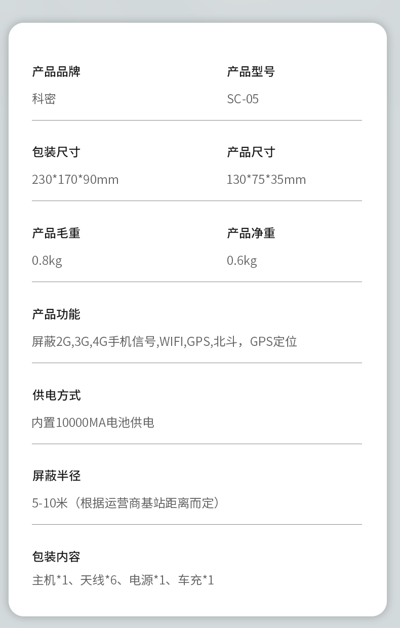 科密车用手机5G信号测试仪防屏蔽探测器会议室防泄密SC-05升级款