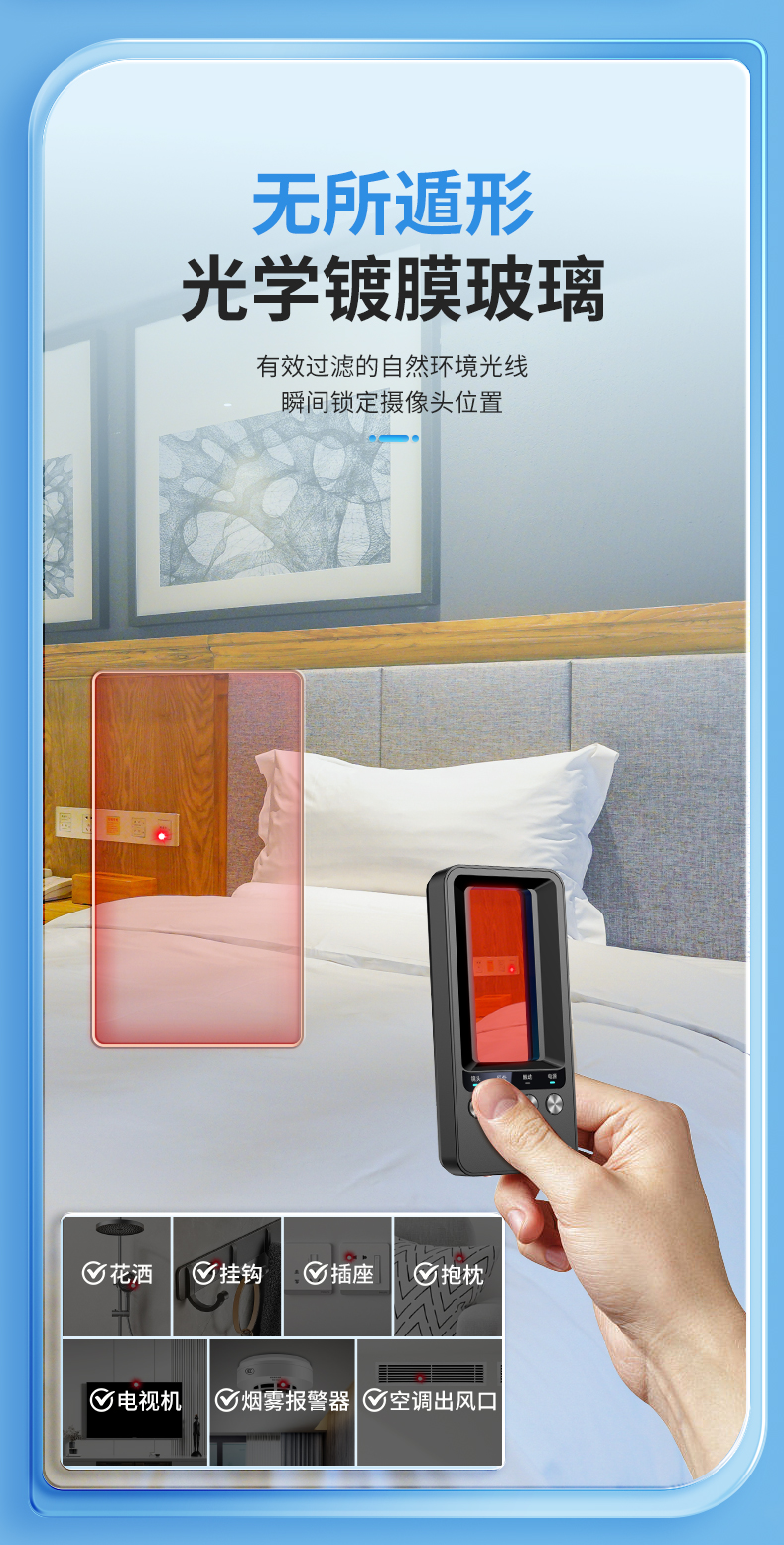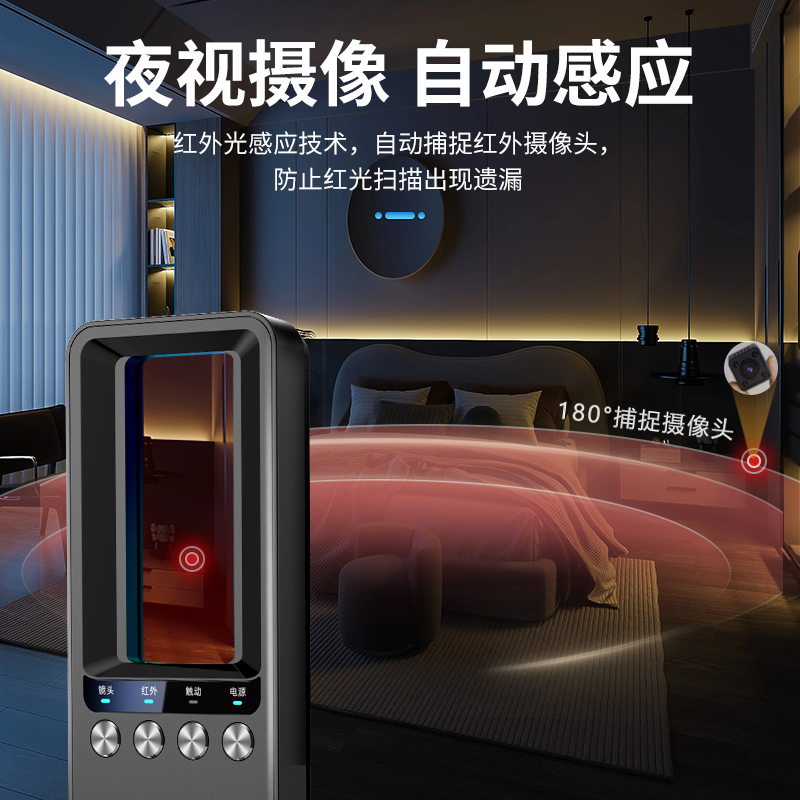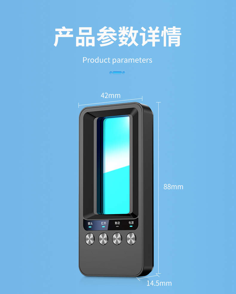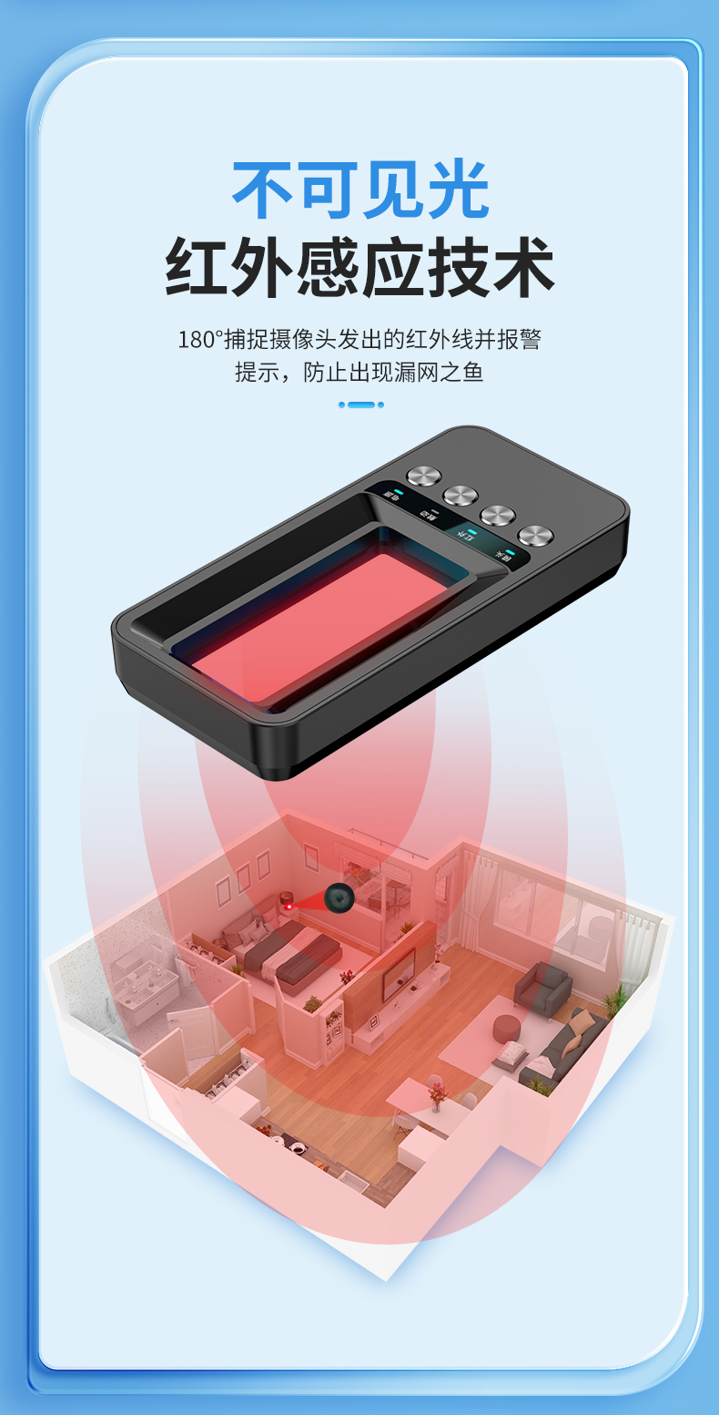 科密摄像头探测器酒店防偷拍触动报警红外线信号探测仪KD10S黑色款