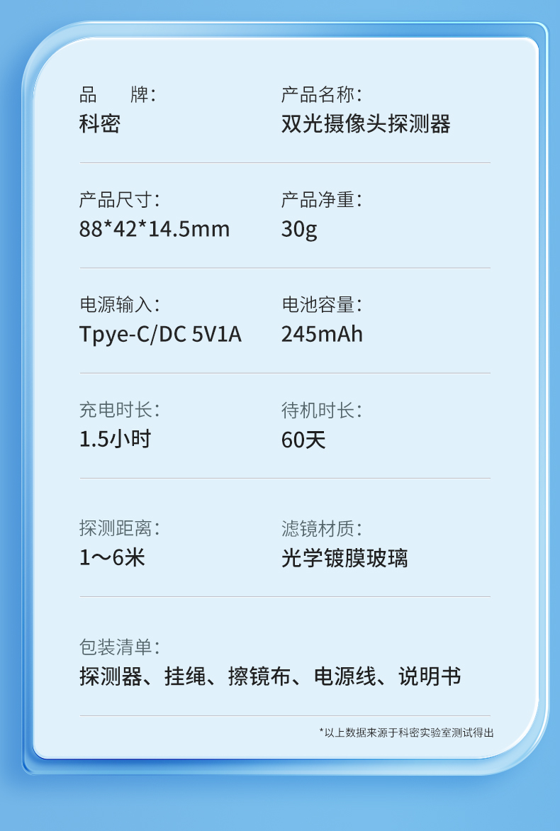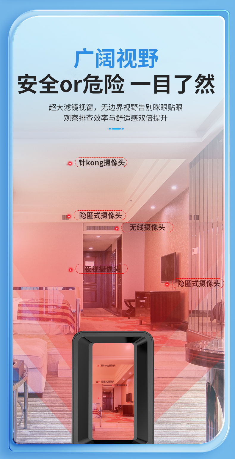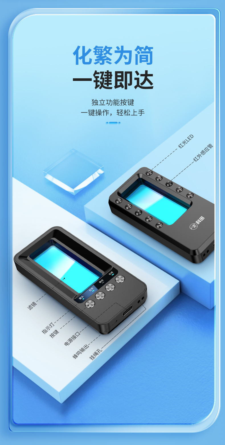 科密摄像头探测器酒店防偷拍触动报警红外线信号探测仪KD10S黑色款
