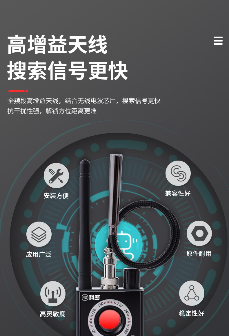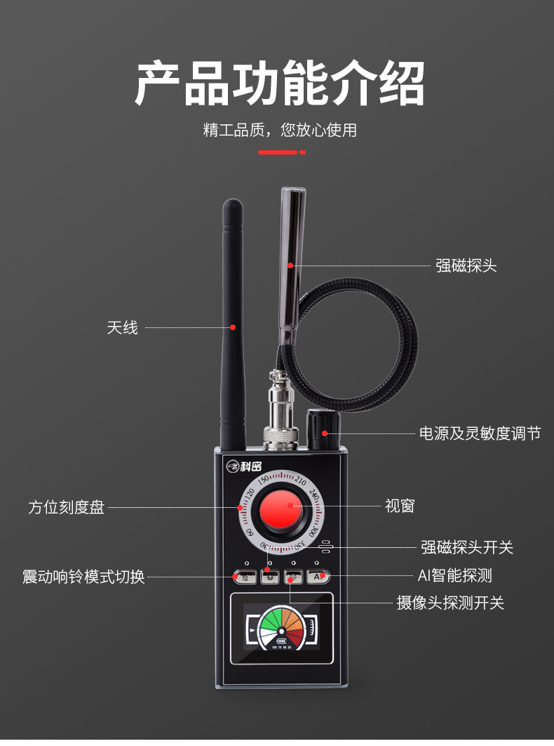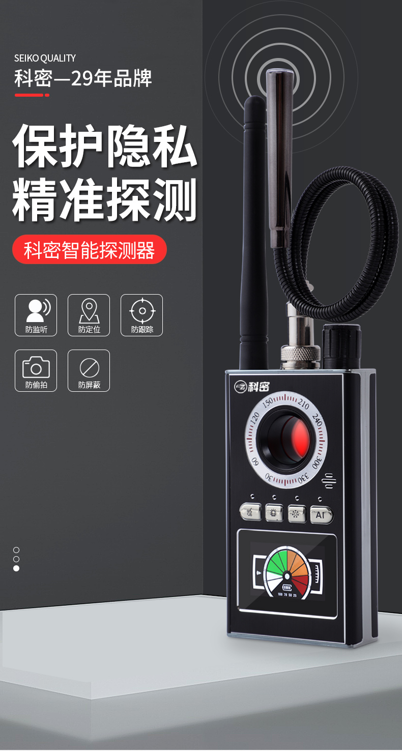 科密摄像头探测器防酒店镜头偷摄监听反窃听北斗gps跟踪器K88