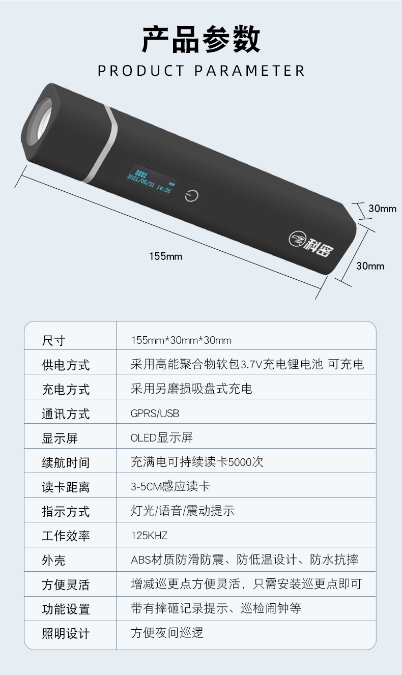 科密CX07 强光照明巡更棒 电子巡更系统 保安巡逻机巡更器(配15个巡更点+5个人员扣)