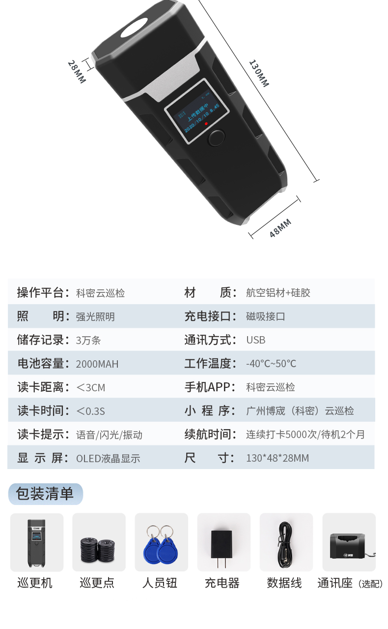 科密CX09巡更棒打卡机 电子巡更系统保安物业巡逻打点棒强光照明高清显示