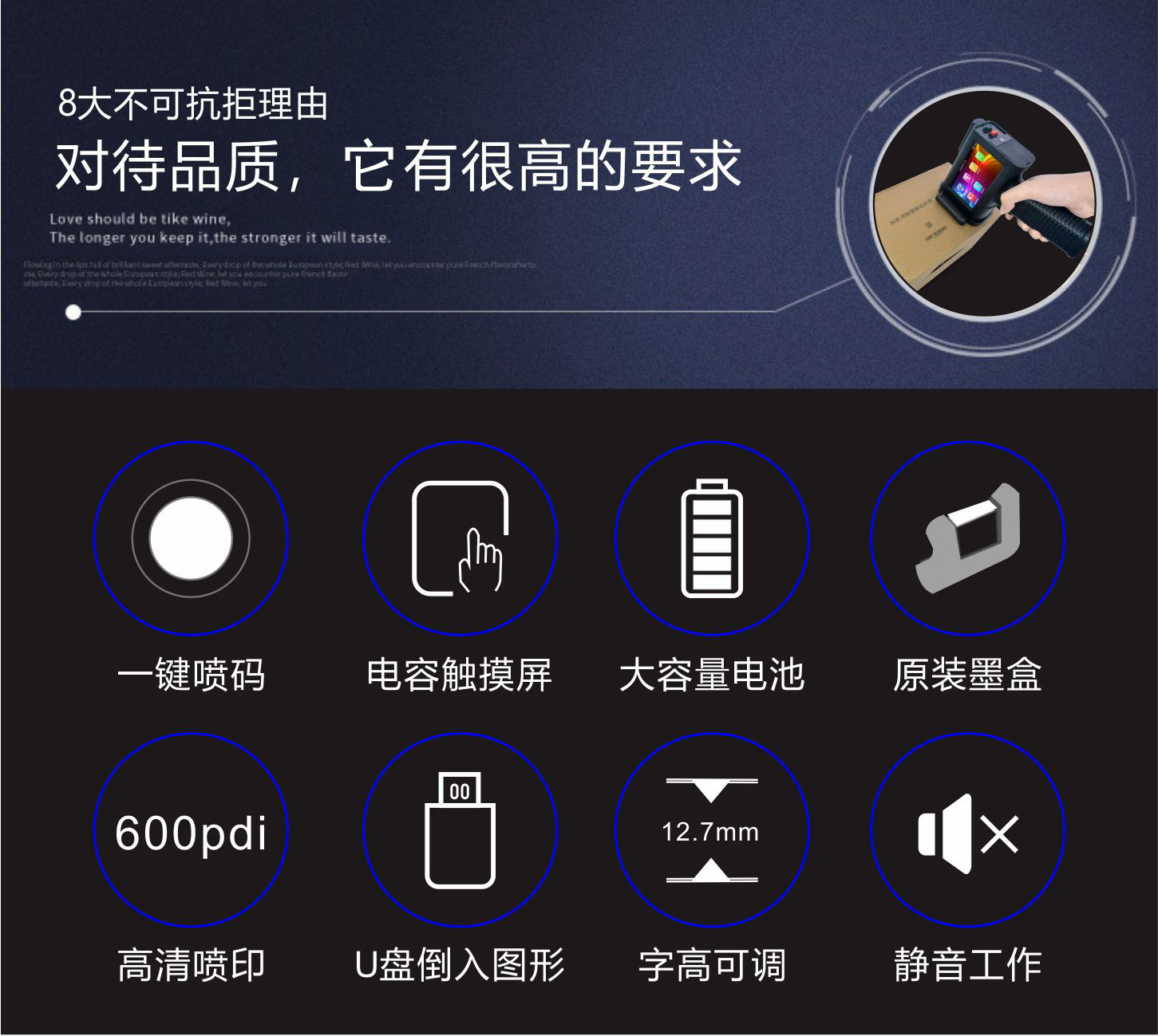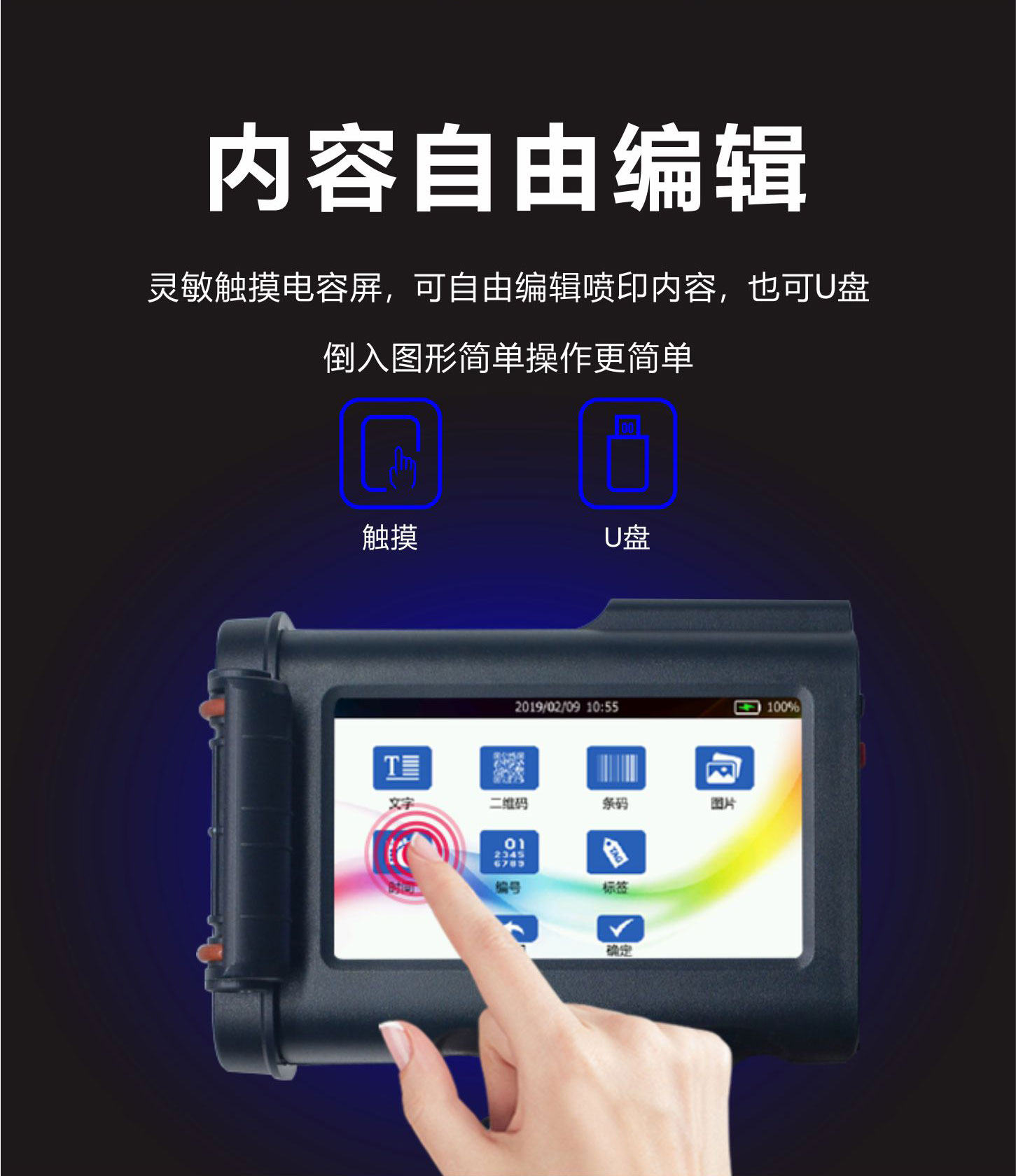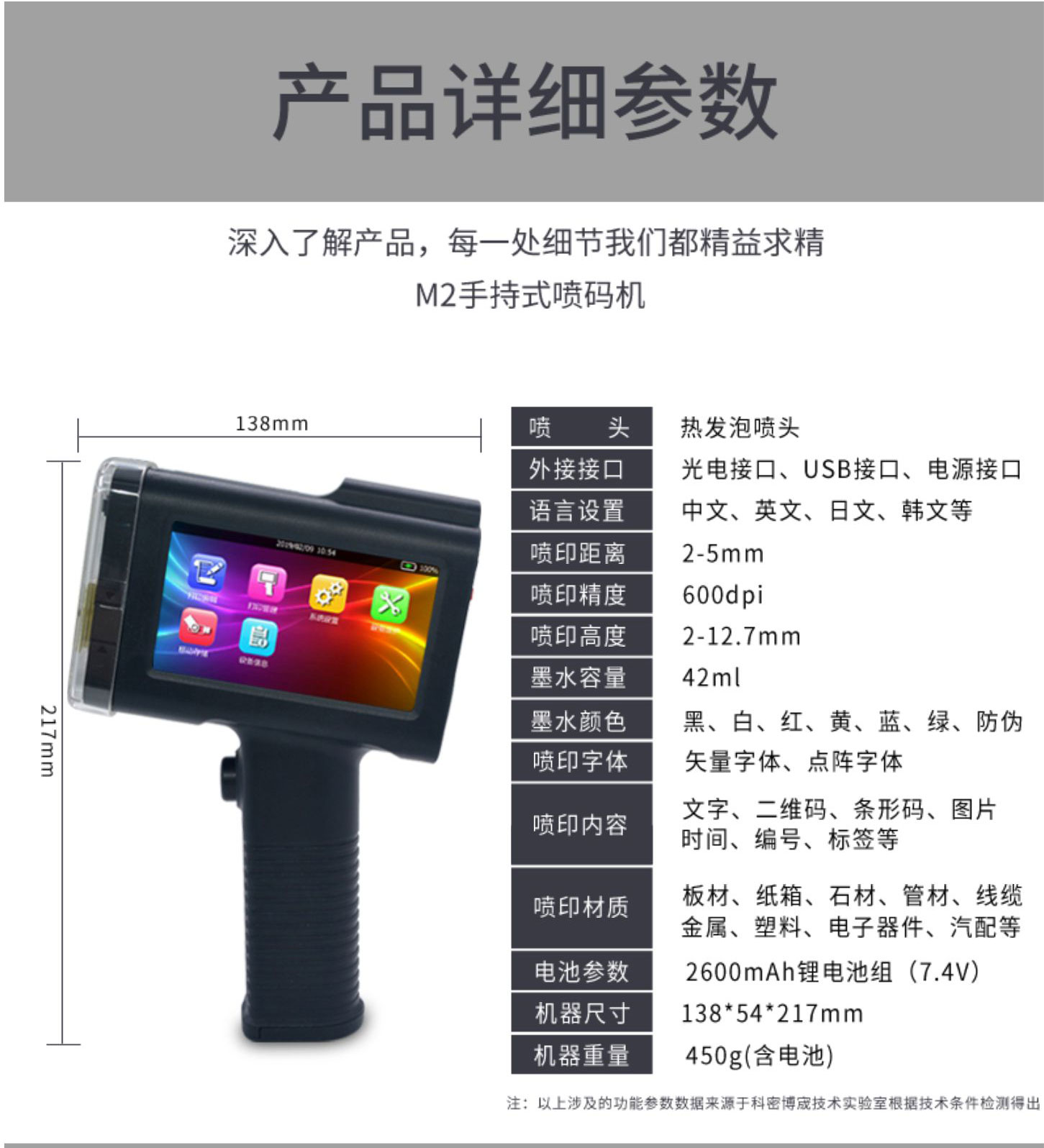 科密手持式便携触屏喷码机打印机打码机 生产线日期条码二维码图标快干自动喷码 可固定流水线M2