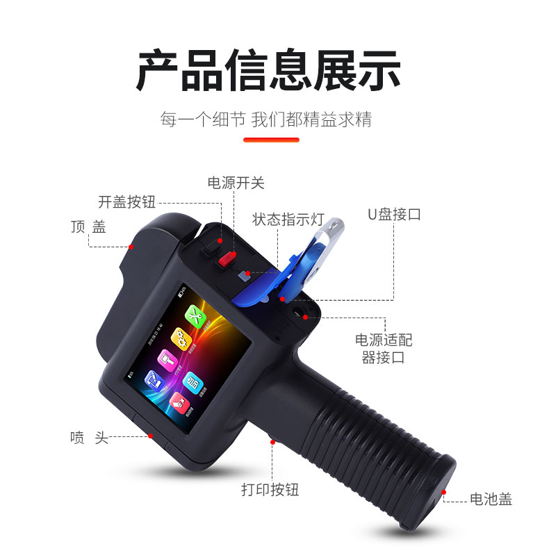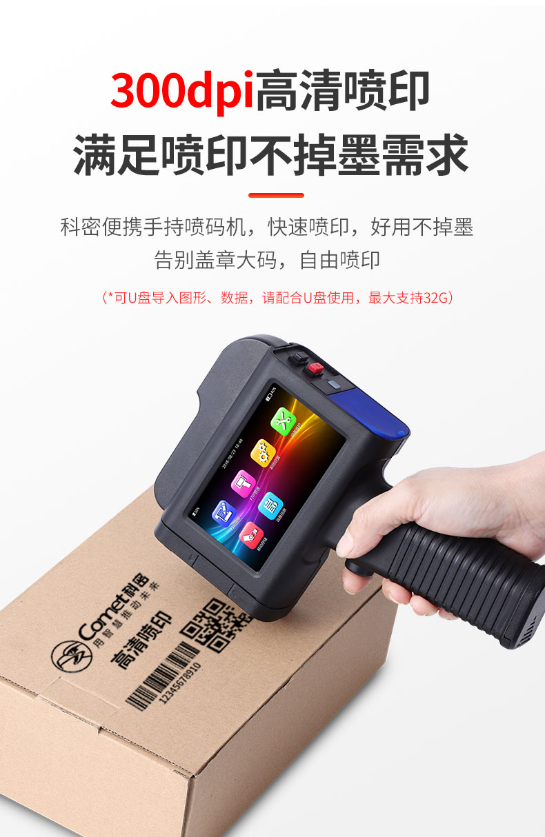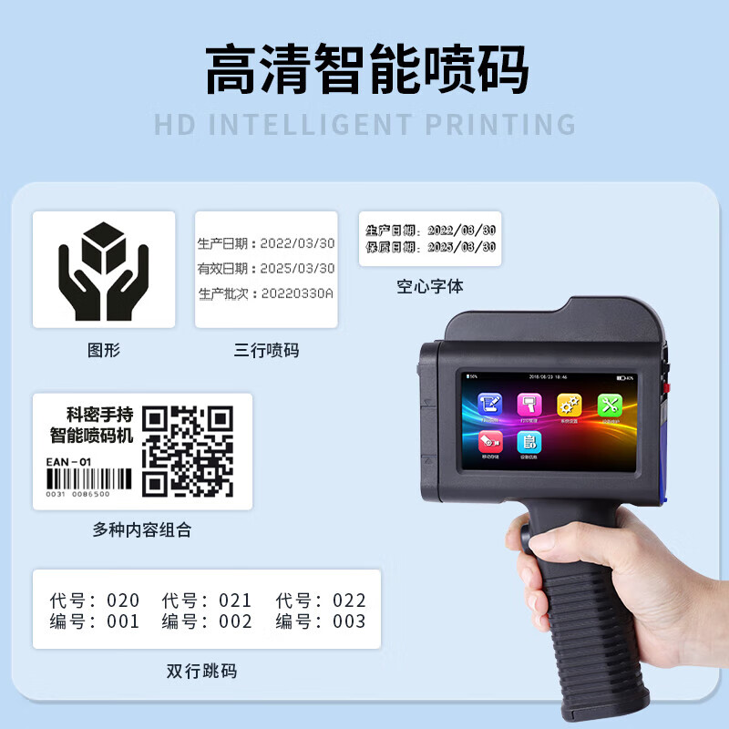 科密 M5 手持式便携触屏喷码机墨盒打印机打码机 生产线日期条码二维码图标快干自动喷码 可固定流水线