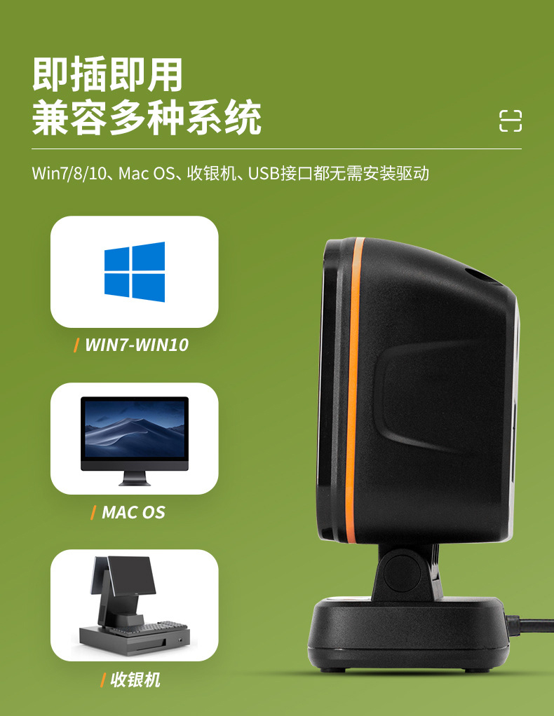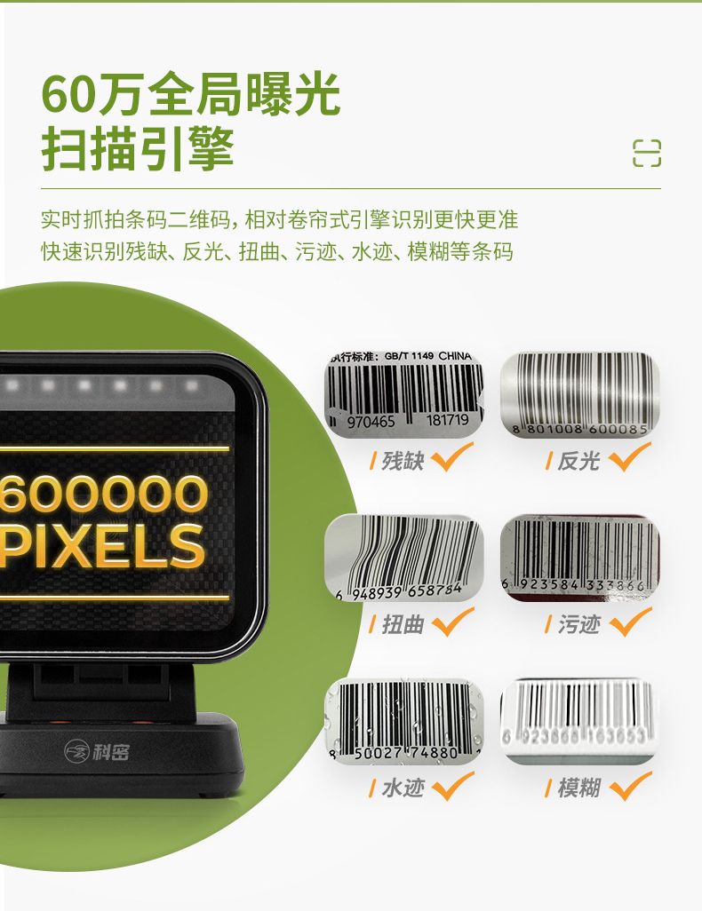科密商用收款扫码机一体机快速通用扫描枪一维二维码支付收银扫码枪