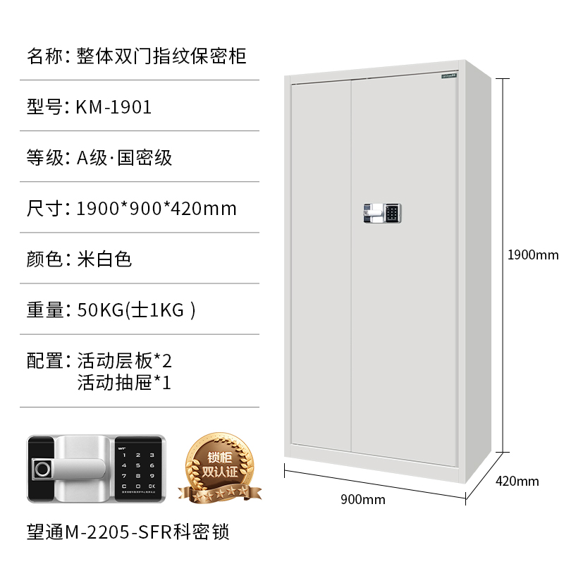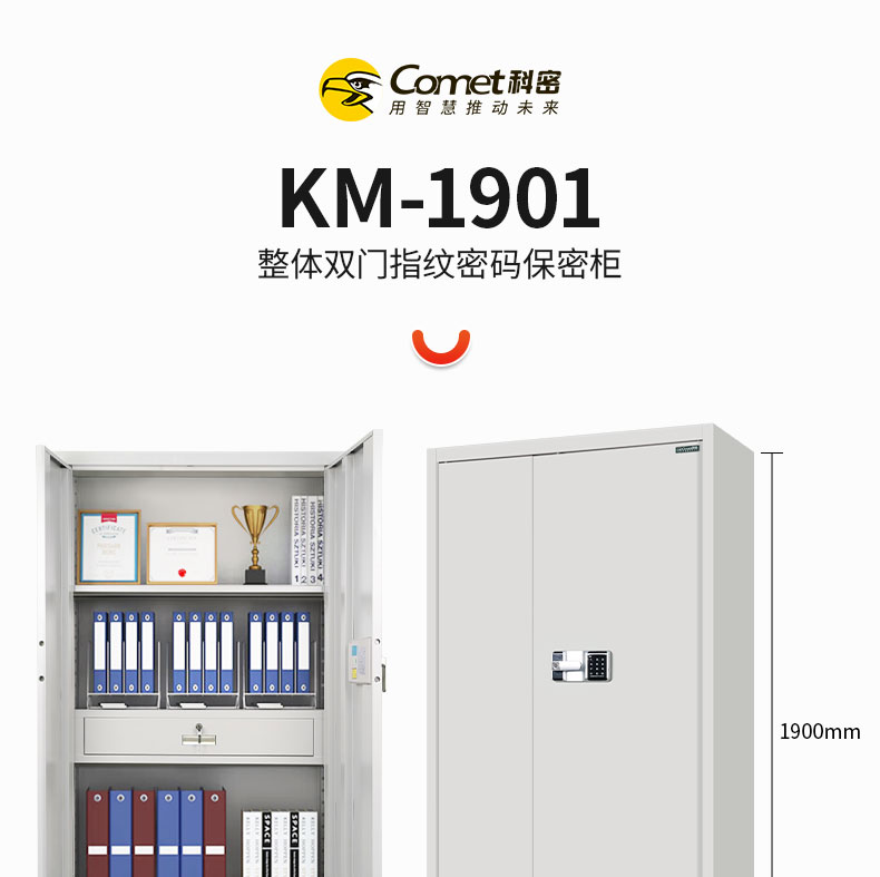 科密 KM1901保密柜电子密码锁指纹锁钢制办公密码锁柜档案柜带抽屉铁皮柜 通门指纹保密柜