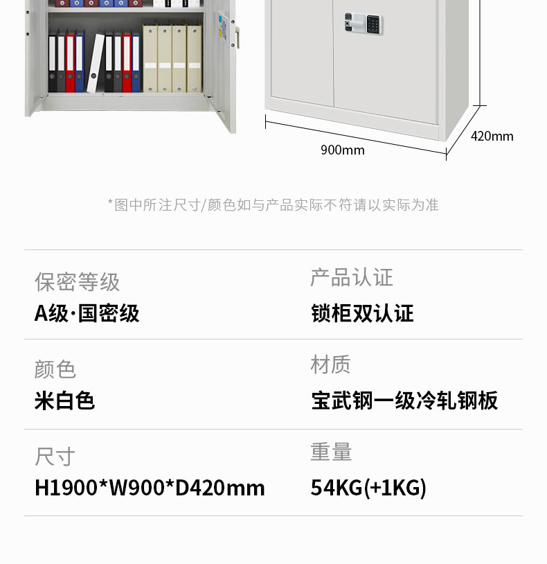 科密 KM1902保密柜电子密码锁指纹锁钢制办公密码锁柜档案柜带抽屉铁皮柜 通双节指纹保密柜