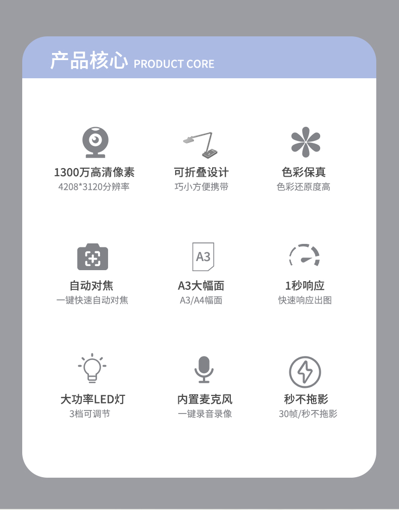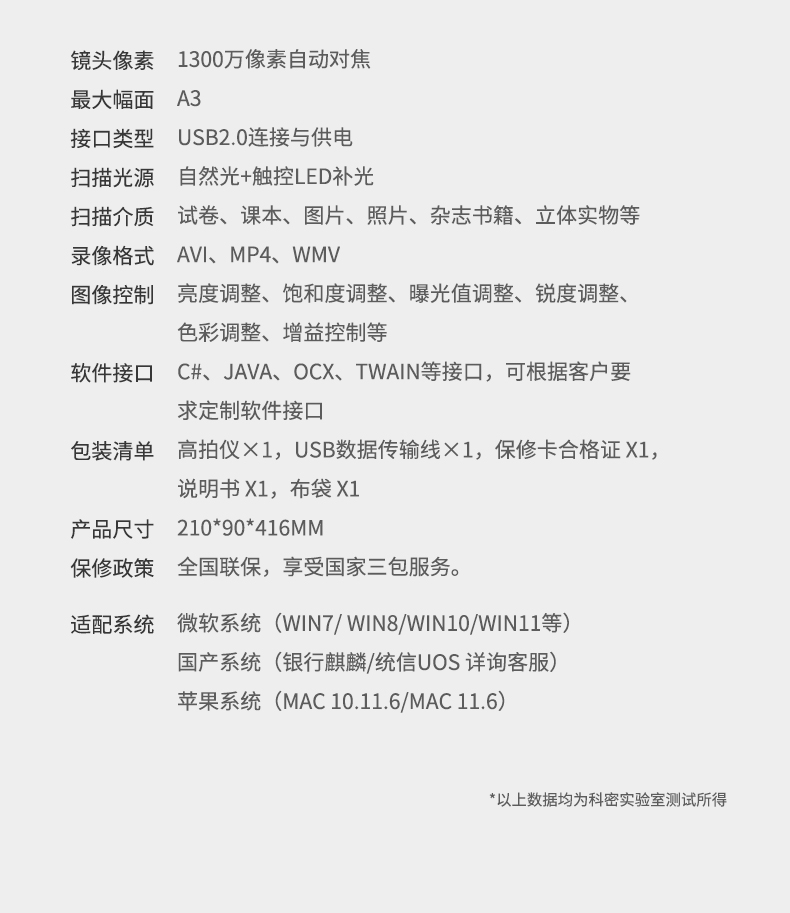 科密(comet) HD4000AF 1300万像素 视频展台高拍仪扫描仪 A3A4试卷书法教学网课投影展示台 国产系统