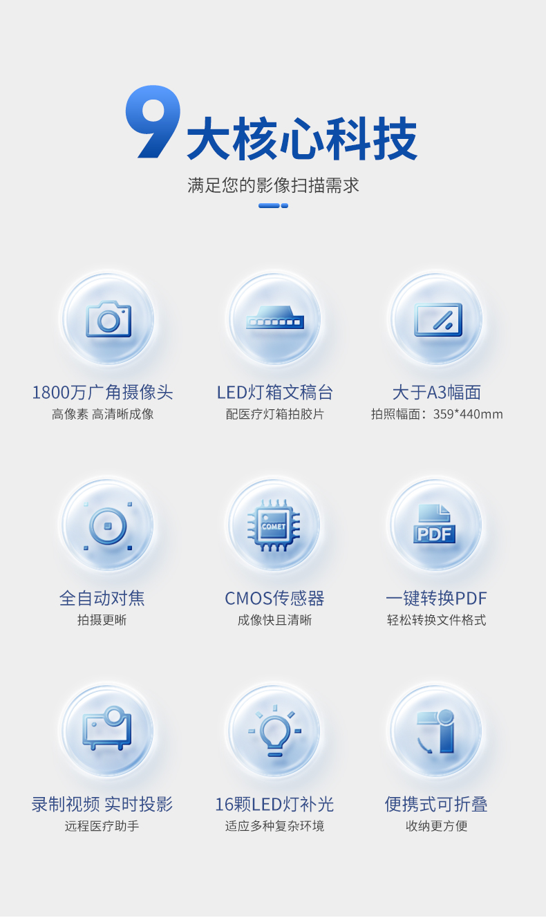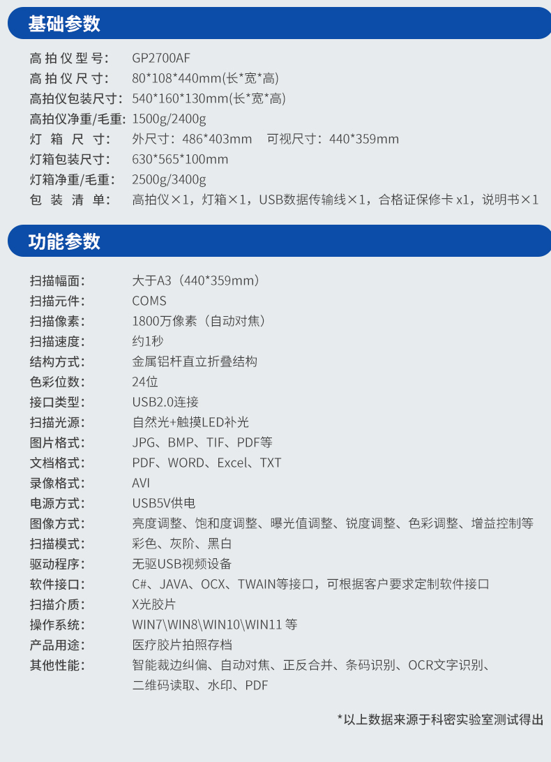 科密(comet) GP2700AF 高拍仪 1800万像素大A3幅面扫描仪 医院影像胶片灯箱便携扫描仪 支持国产系统