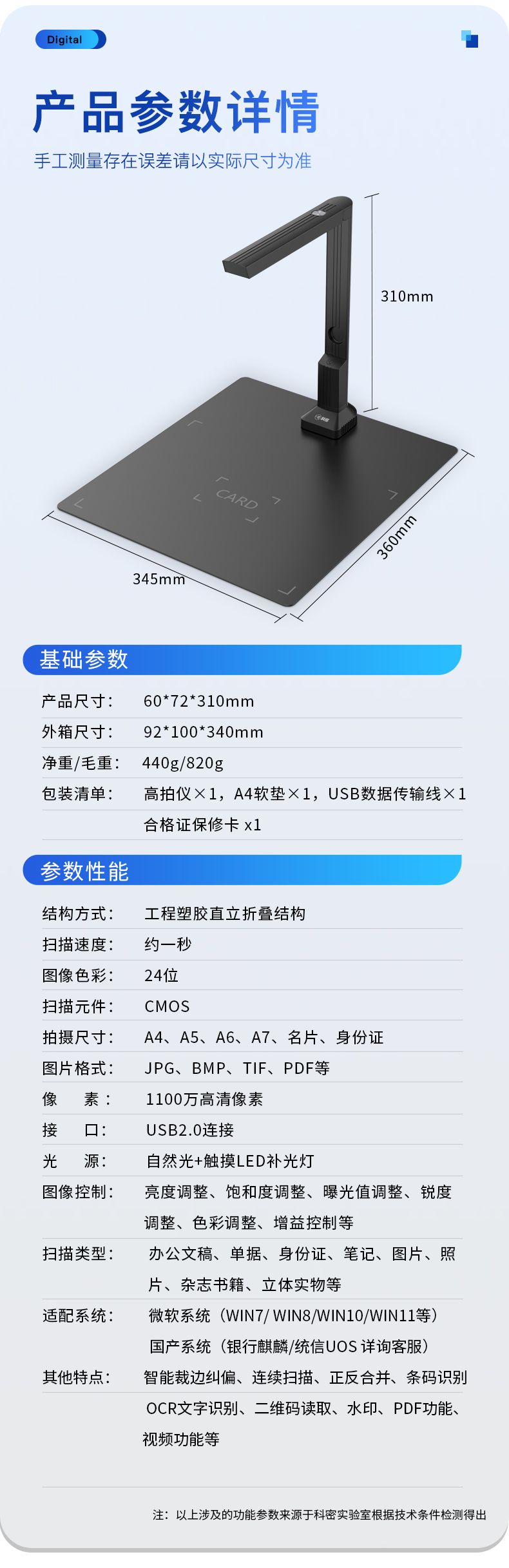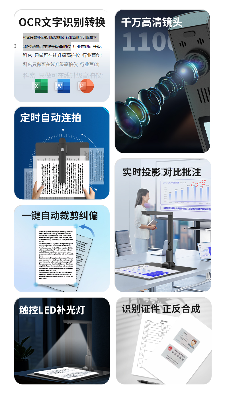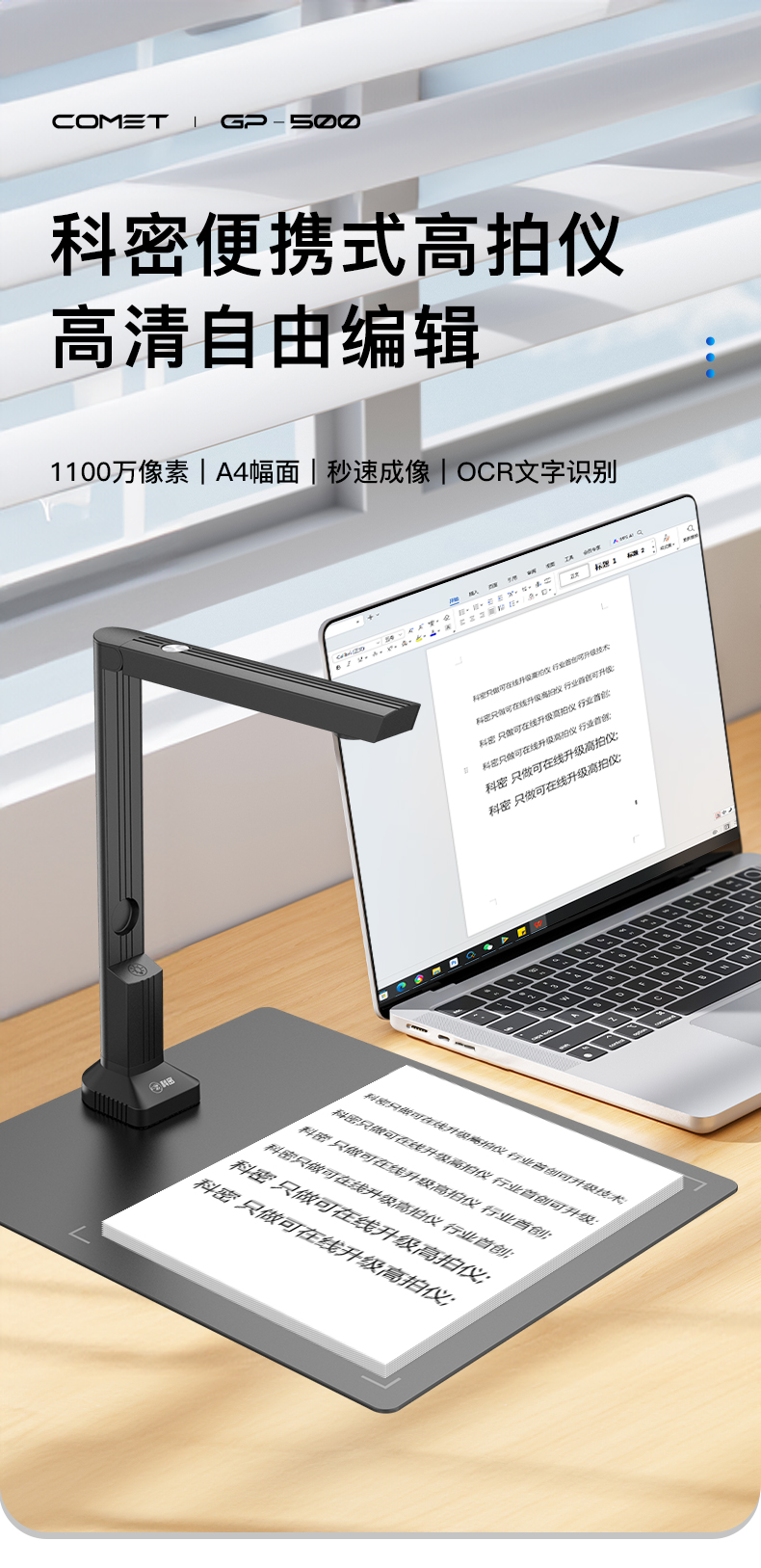 科密(comet) GP-500 高拍仪 1100万像素 可在线升级扫描仪 A4文件PDF合成 OCR文字识别 适配国产系统