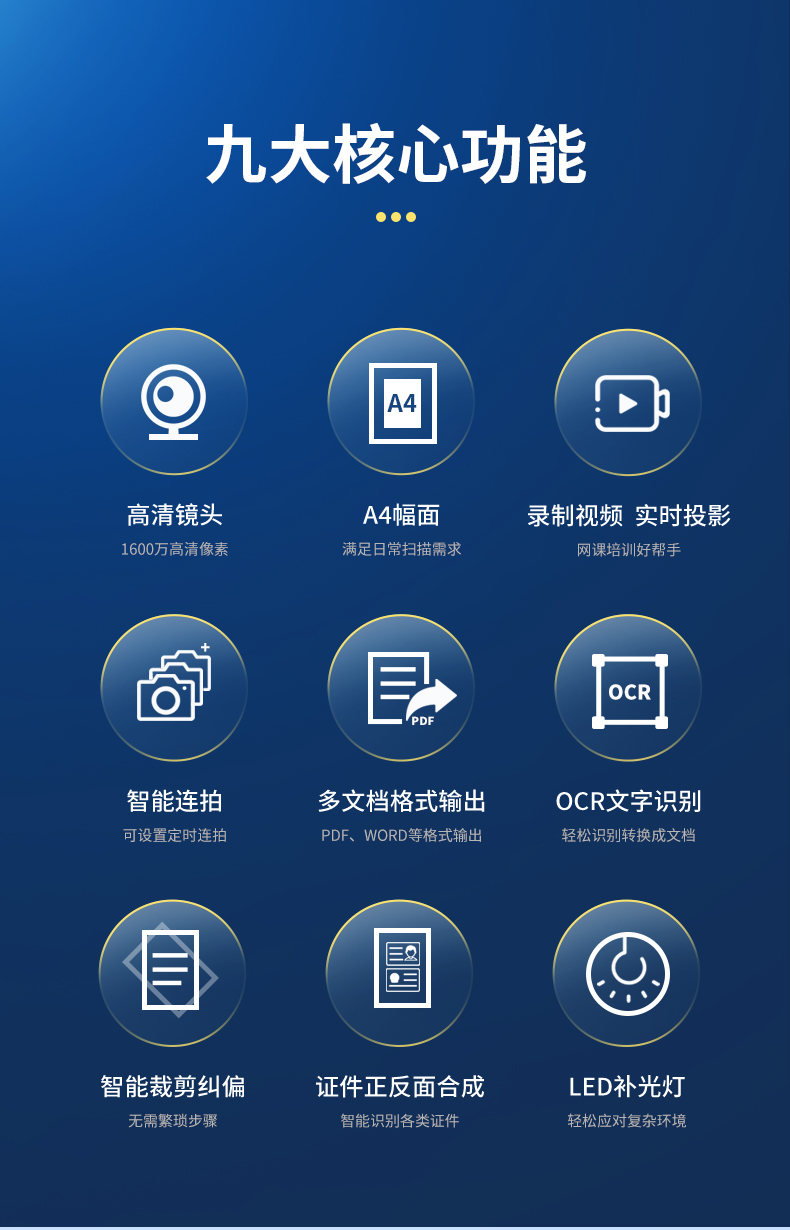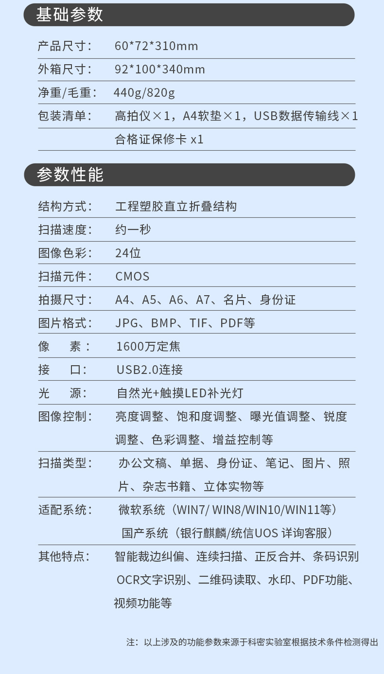 科密(comet) GP-1000 高拍仪 1600万像素 可在线升级扫描仪 A4文件PDF合成 OCR文字识别 适配国产系统