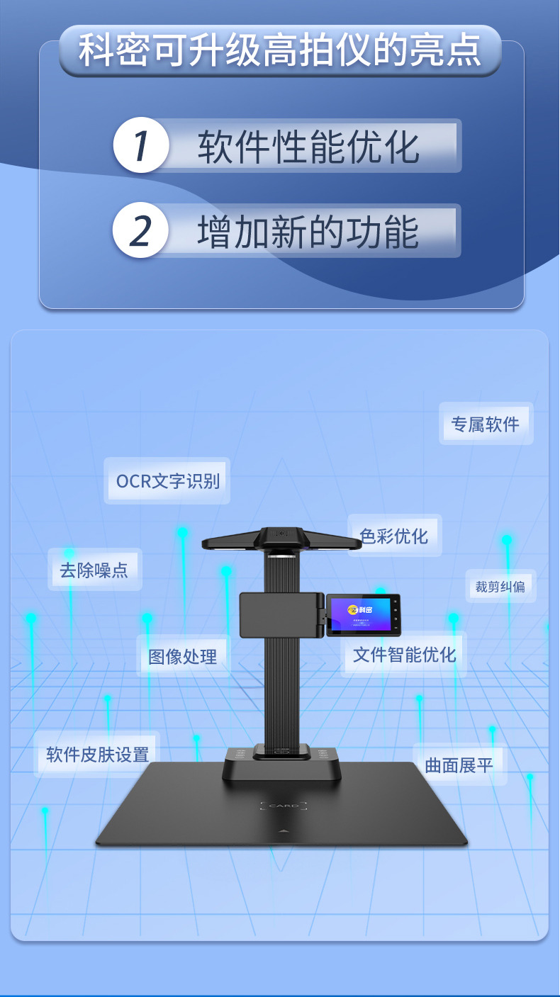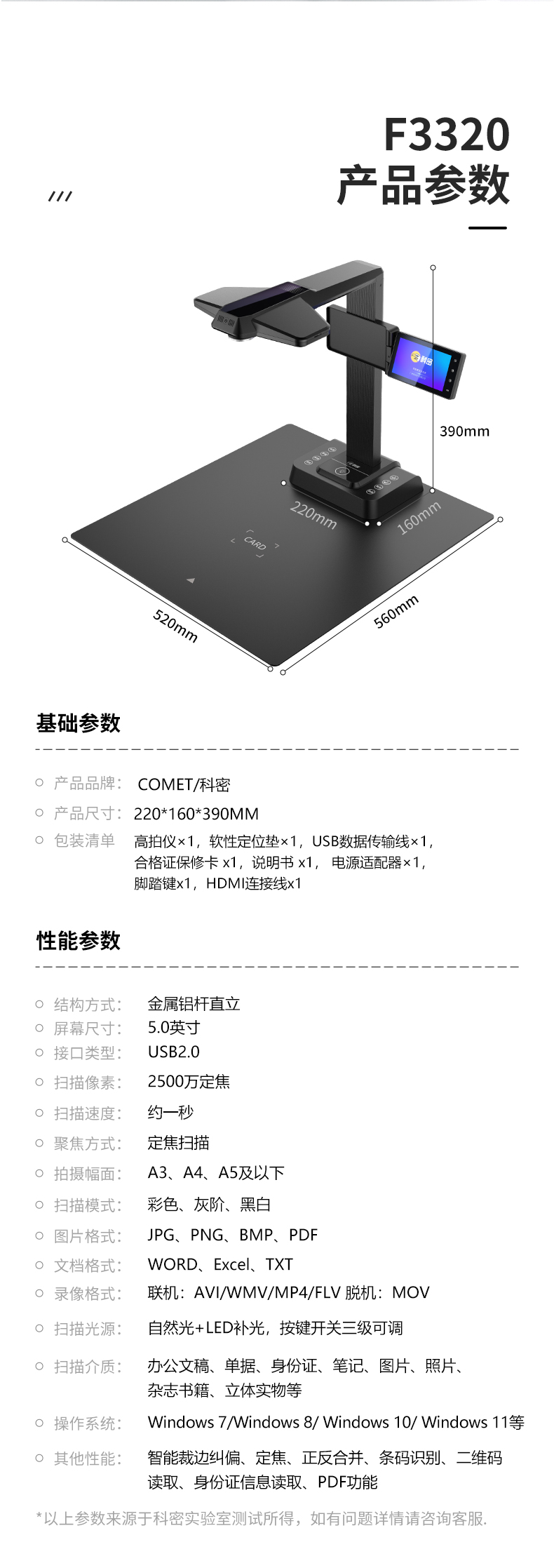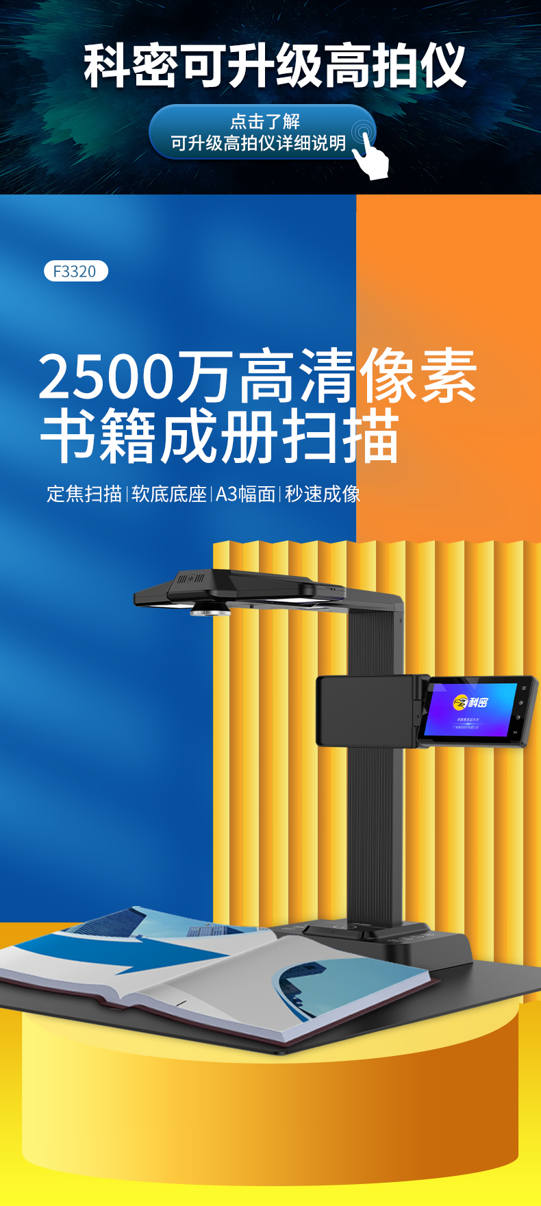 科密 F3320 高拍仪 2500万高清像素 A3A4书籍曲面展平 OCR扫描仪 预览屏 HDMI 可二次开发 军队军采指定机型