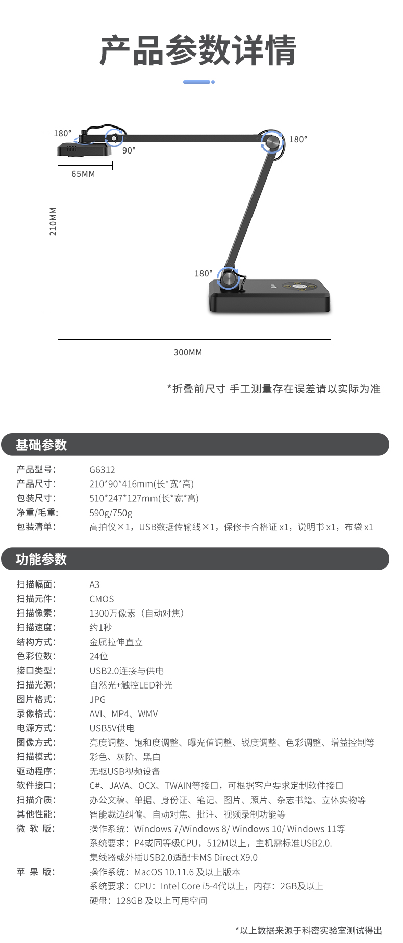 科密(comet) G6312 视频展台 1300万像素 A3书法教学投影仪展台 实物展示台高拍仪 绘画扫描仪