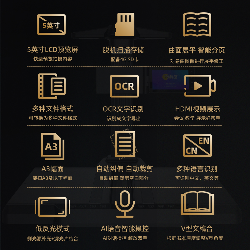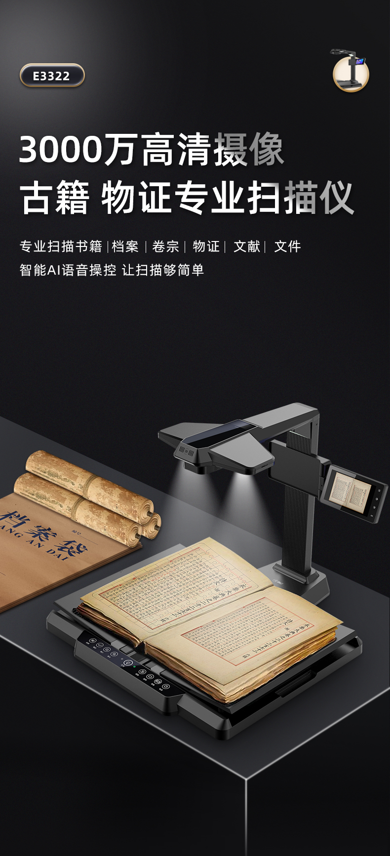 科密E3322 3000万高清像素高拍仪 书籍成册扫描曲面展平 A3A4古籍物证档案扫描仪OCR识别