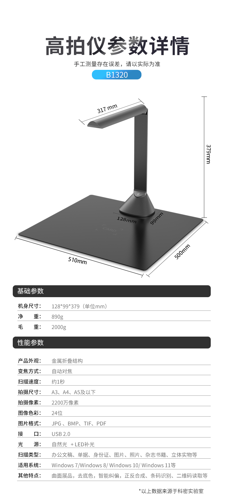 科密(comet) B1320 高拍仪 2200万高清像素 自动对焦A3A4 OCR 书籍曲面展平