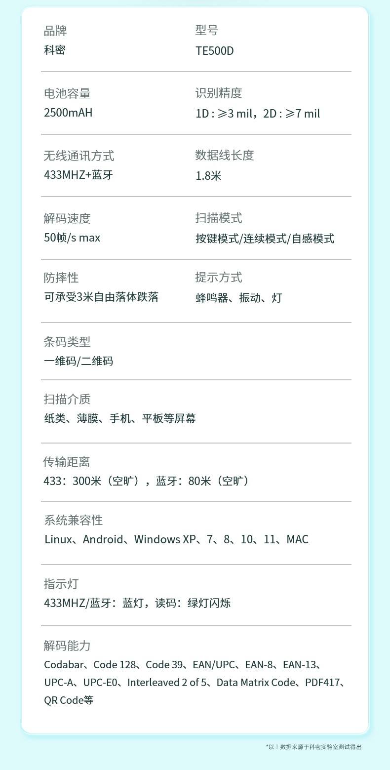 科密(comet)扫描枪无线蓝牙扫码枪一二维扫码器 超市餐饮收银仓库物流盘点 带座TE500D 支持国产系统