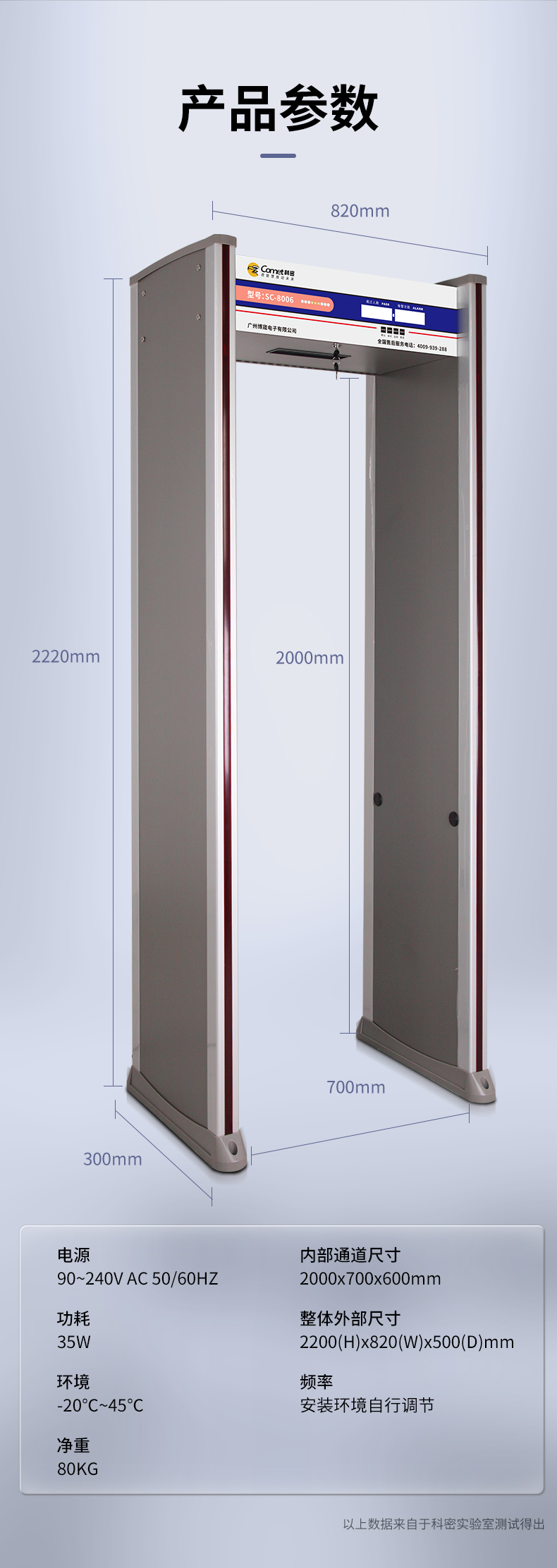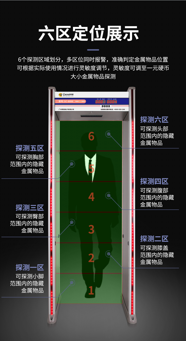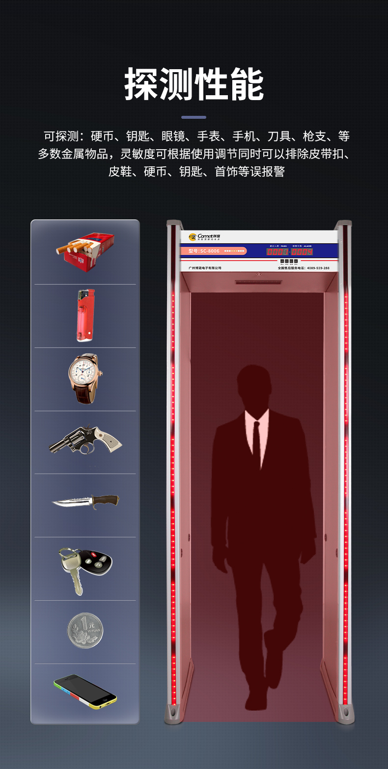 科密安检门金属探测门六区检测工厂防盗手机车站学校公检法SC-8006