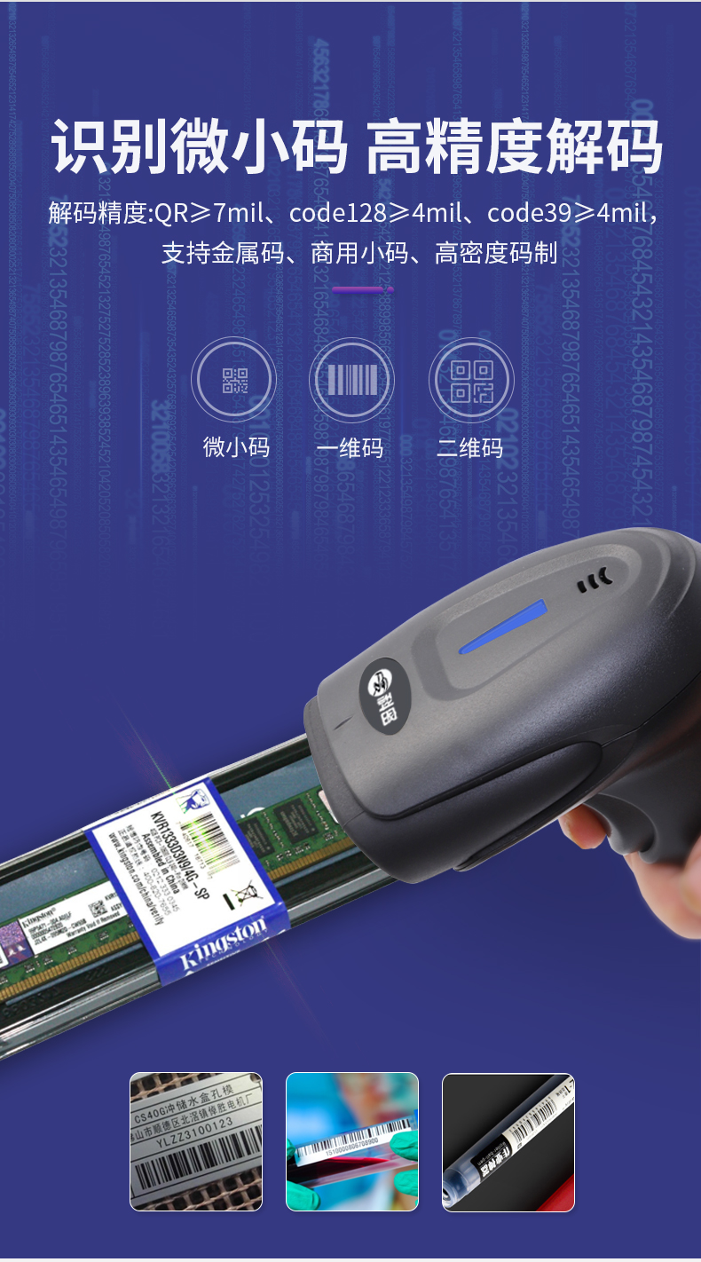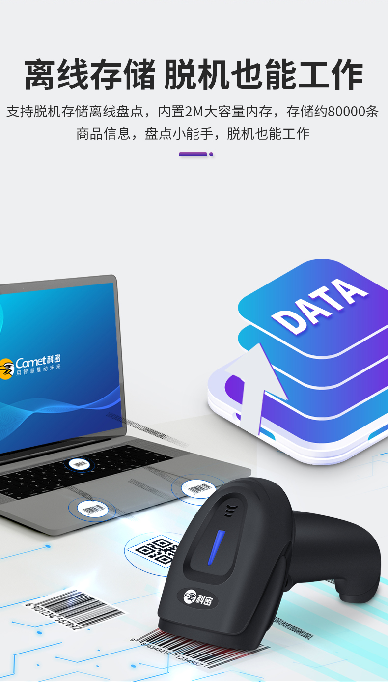 科密(comet)五星 无线扫码枪一二维码条码枪扫描枪 烟酒零售物流生产制造 工业金属码微小医保码扫码器
