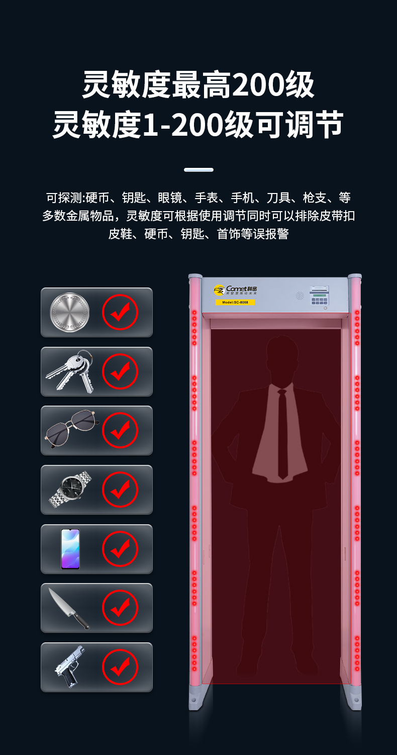 科密安检门金属探测门六区检测工厂防盗手机车站学校公检法SC-8068