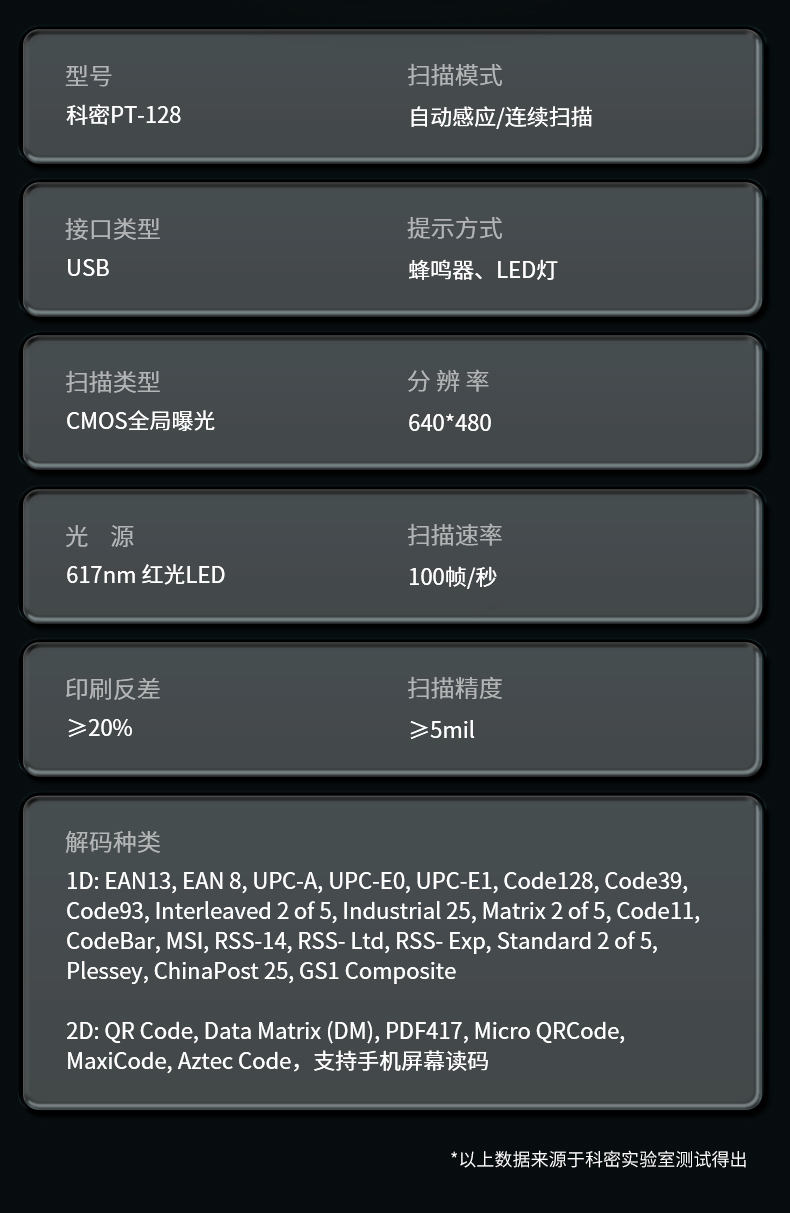 科密(comet)扫码枪扫描枪 二维码扫描盒子 收款器平台 快递物流超市商品收银条码PT-128 支持国产系统