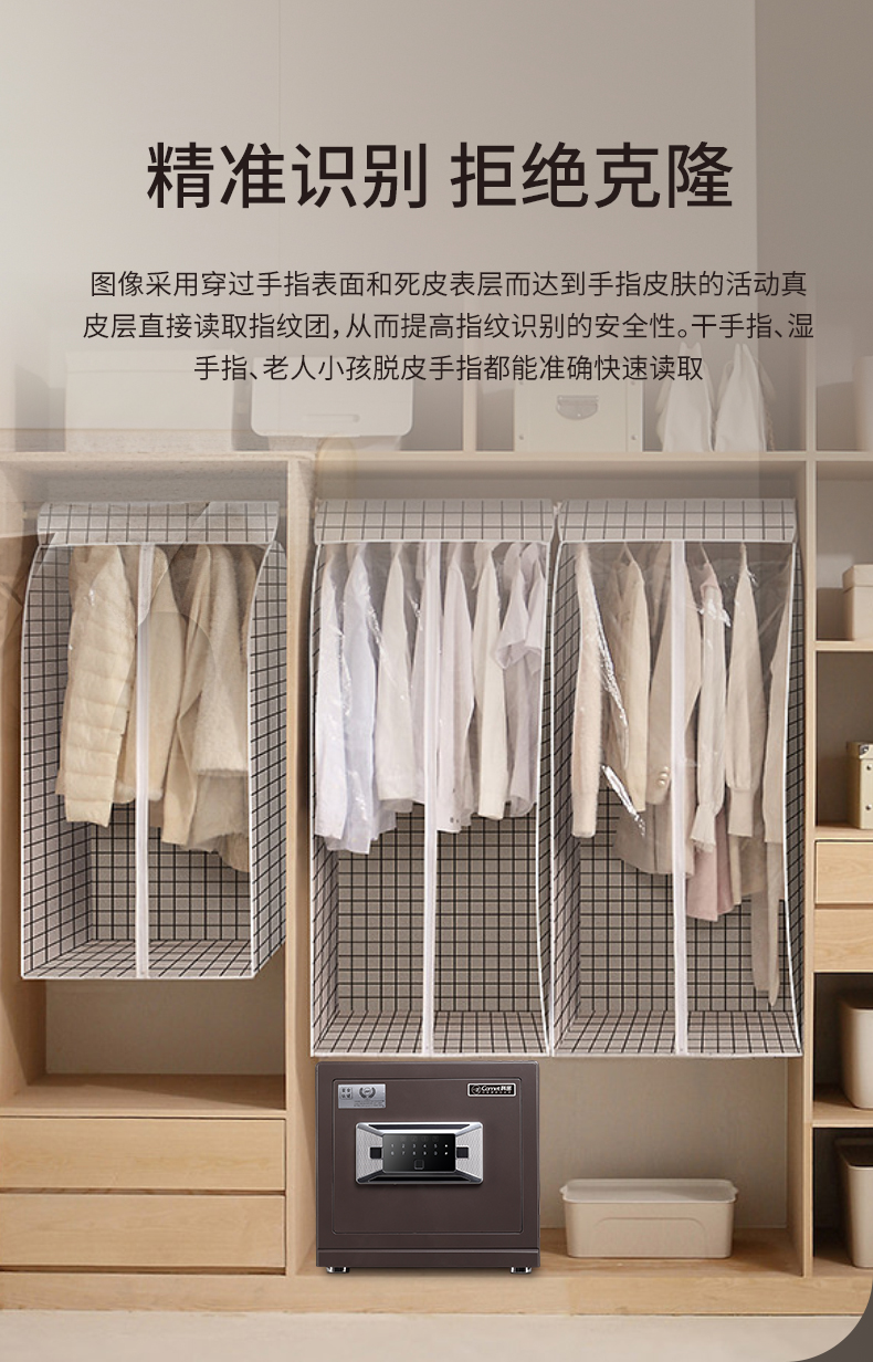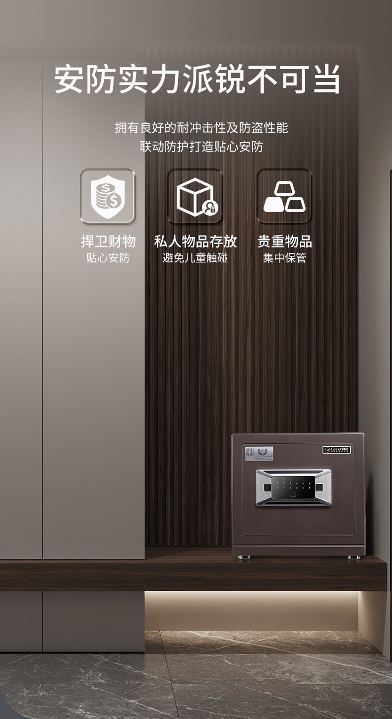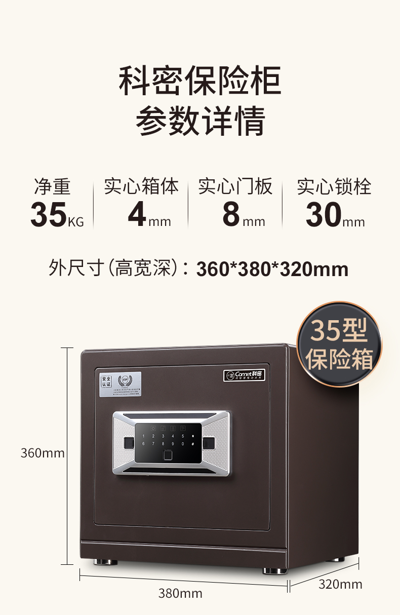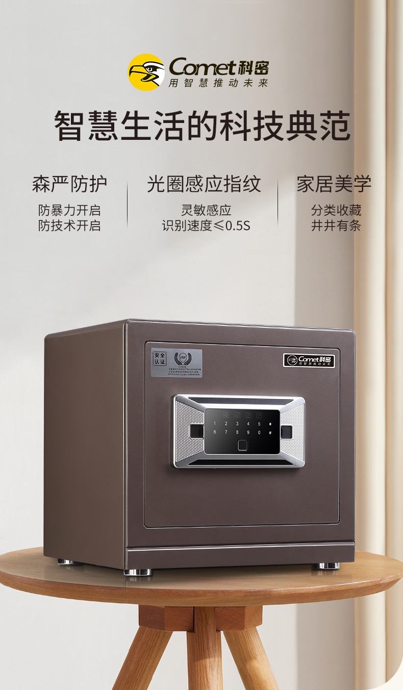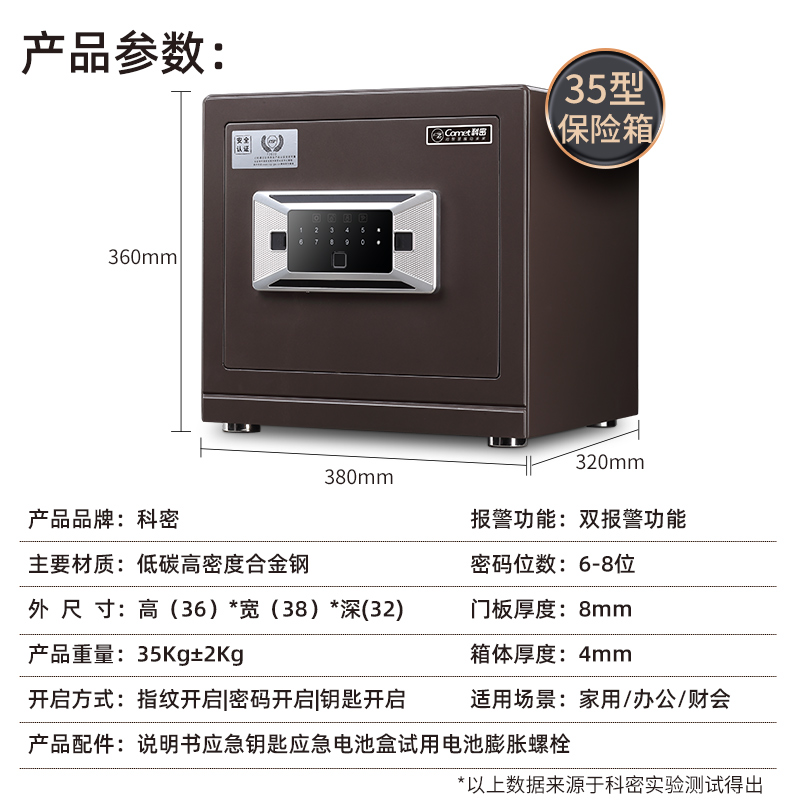 科密 FDG-35Zs全钢办公家用指纹密码保险箱 轻奢灰 35CM