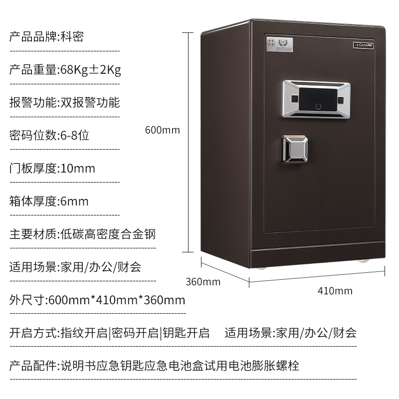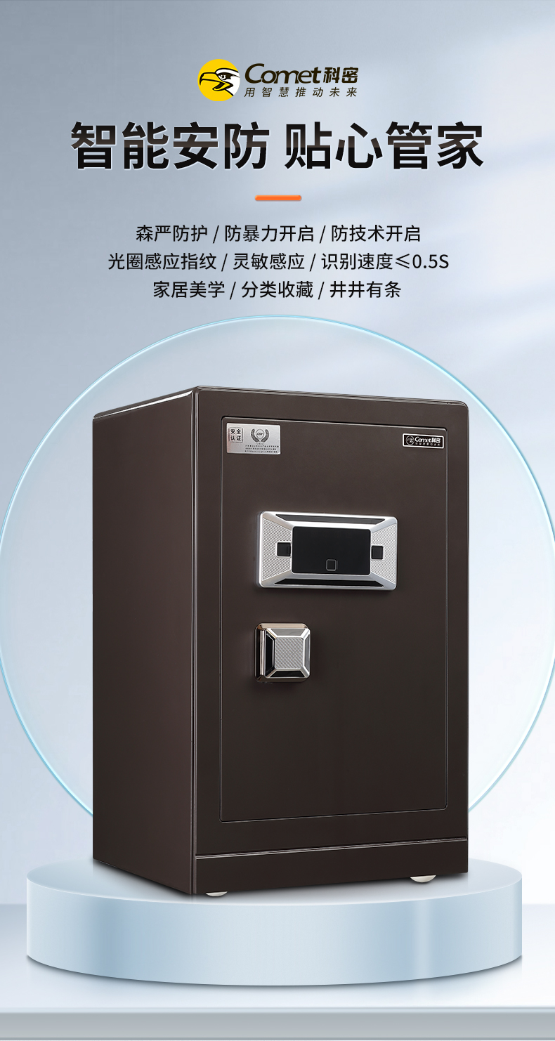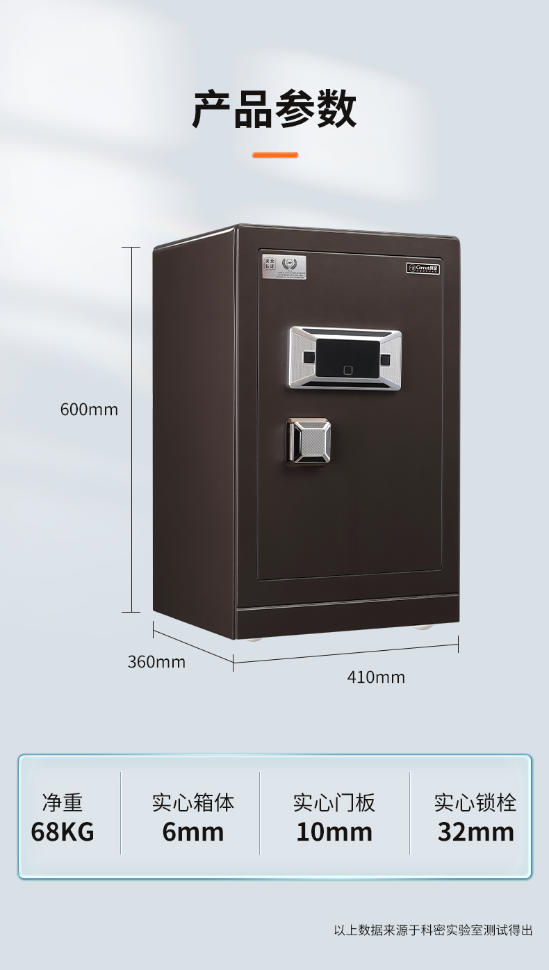 科密 FDG-60Zs全钢办公家用指纹密码保险柜轻奢灰 60CM