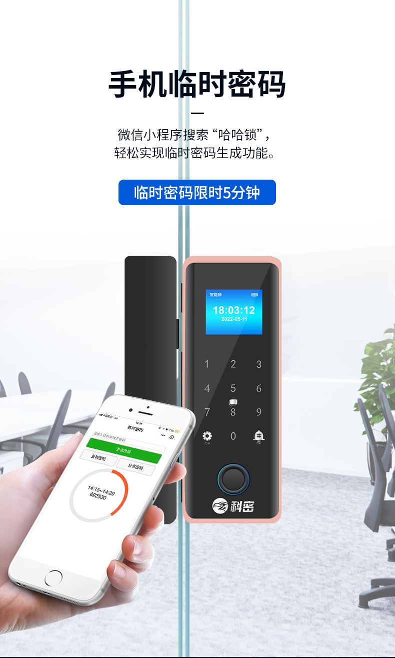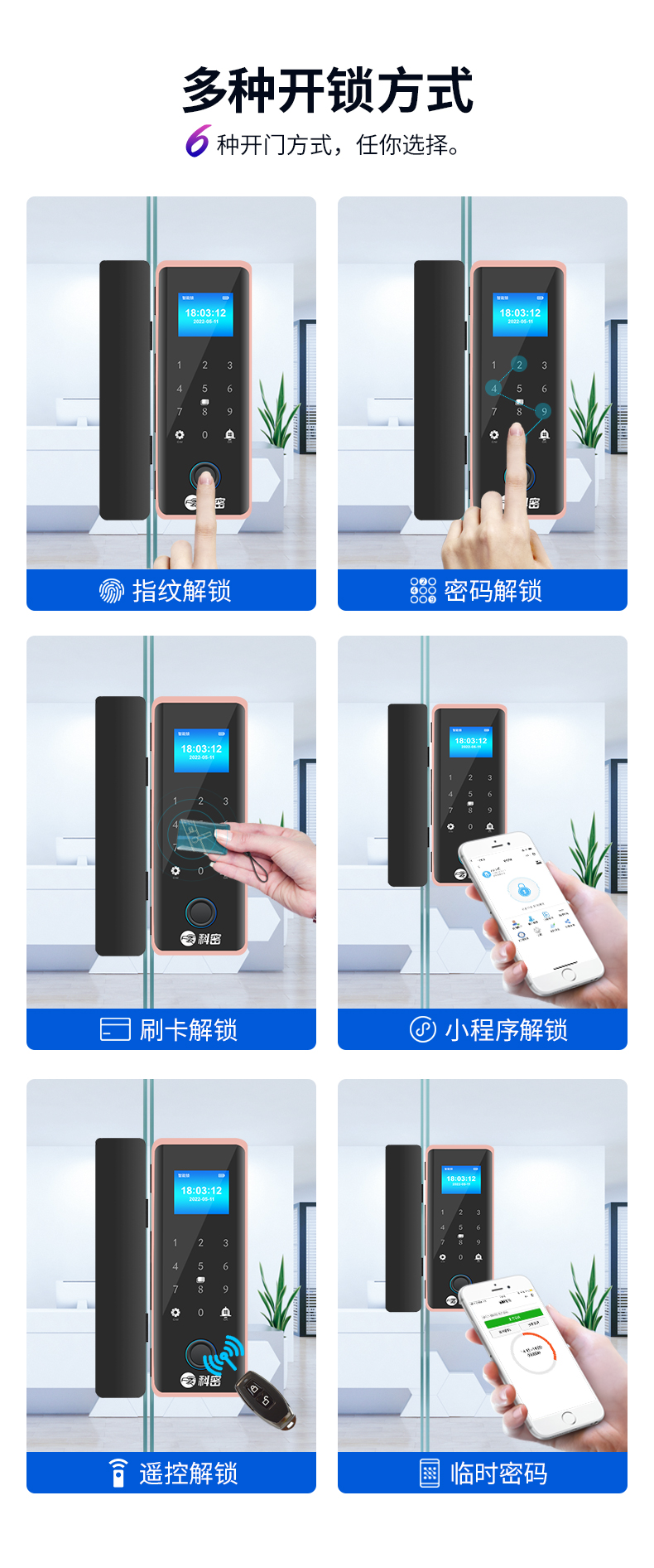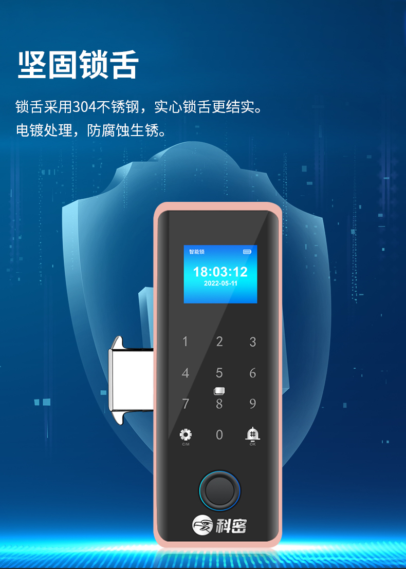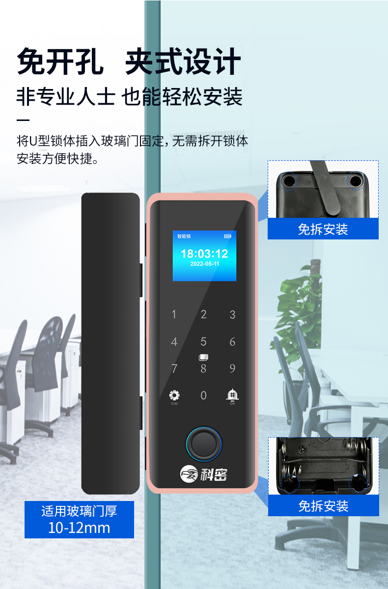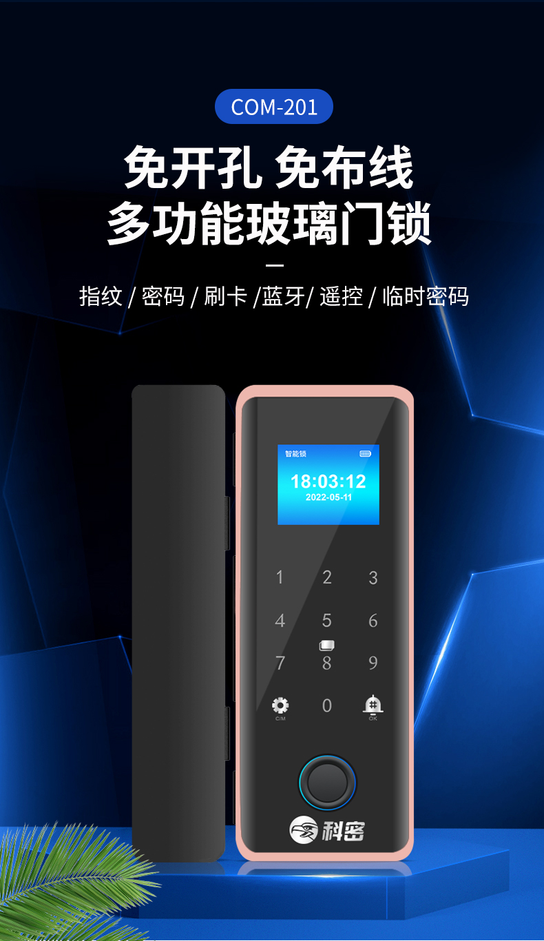科密(comet)玻璃门指纹锁智能电子密码锁办公室玻璃门锁免开孔蓝牙小程序开锁 升级金属机身COM-201