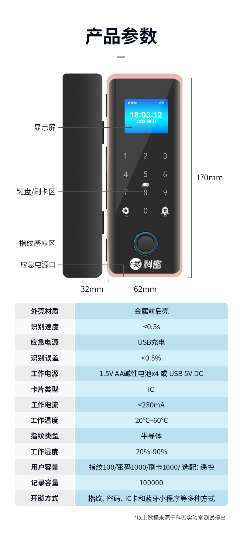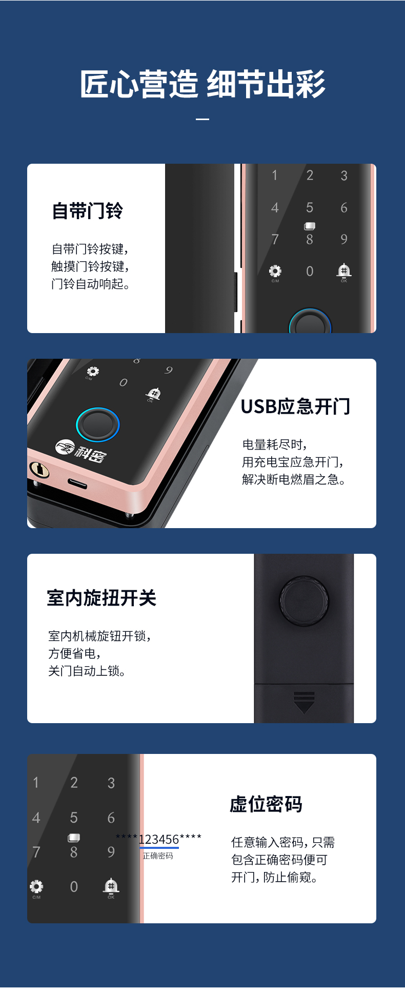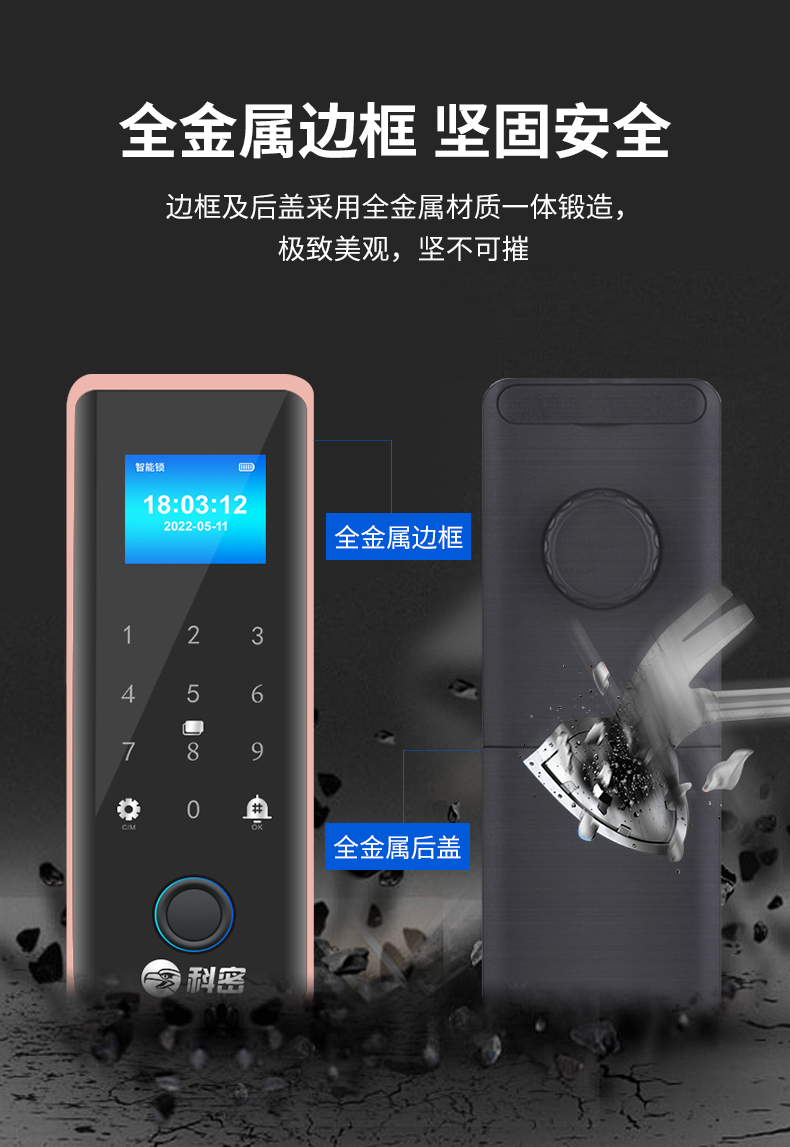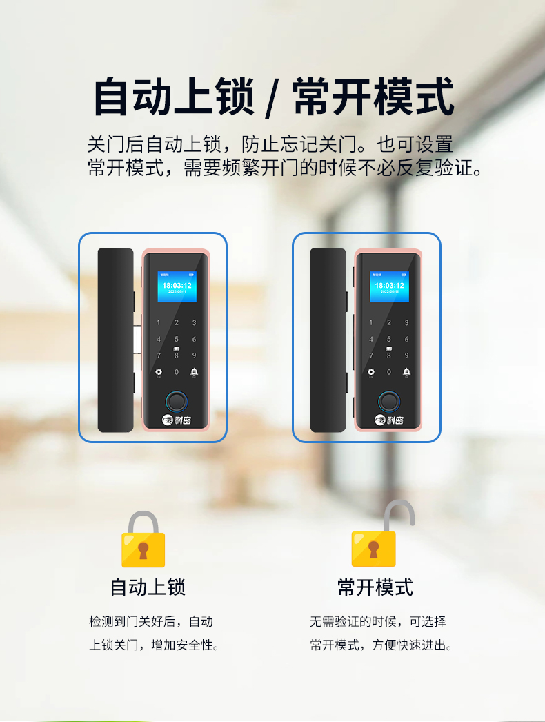 科密(comet)玻璃门指纹锁智能电子密码锁办公室玻璃门锁免开孔蓝牙小程序开锁 升级金属机身COM-201