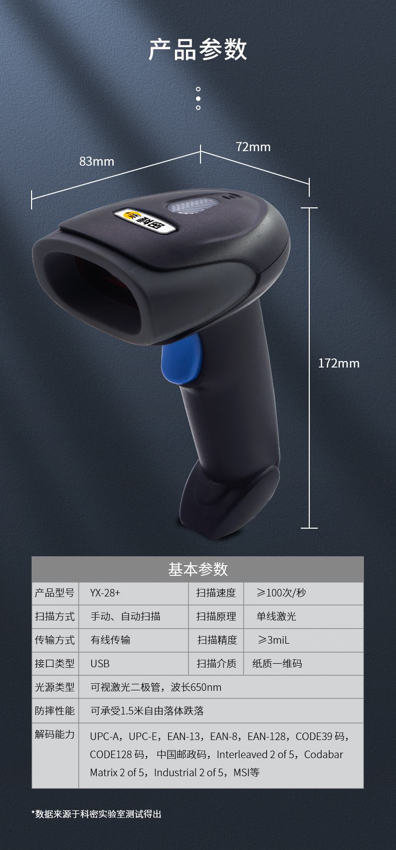 科密(comet)YX-28+ 有线一维码激光扫描枪扫码枪条码枪扫码器扫描器 快递零售仓库物流商品盘点出入库