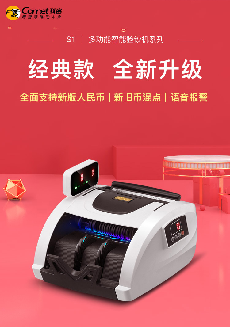 科密(comet)验钞点钞机支持新版人民币 小型家用商用收银支付 新旧混点语音便携双屏C级数钞机S1