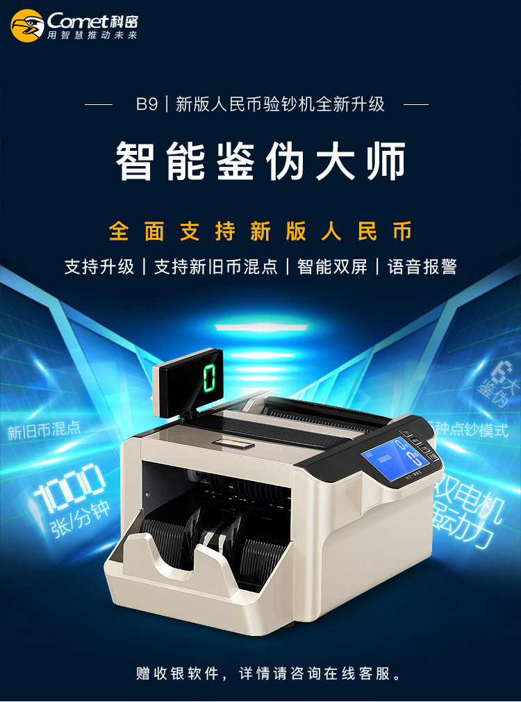 科密(comet)新版人民币验钞点钞机 国标B类点钞机 银行可用商用 新旧币混点双屏语音 B9