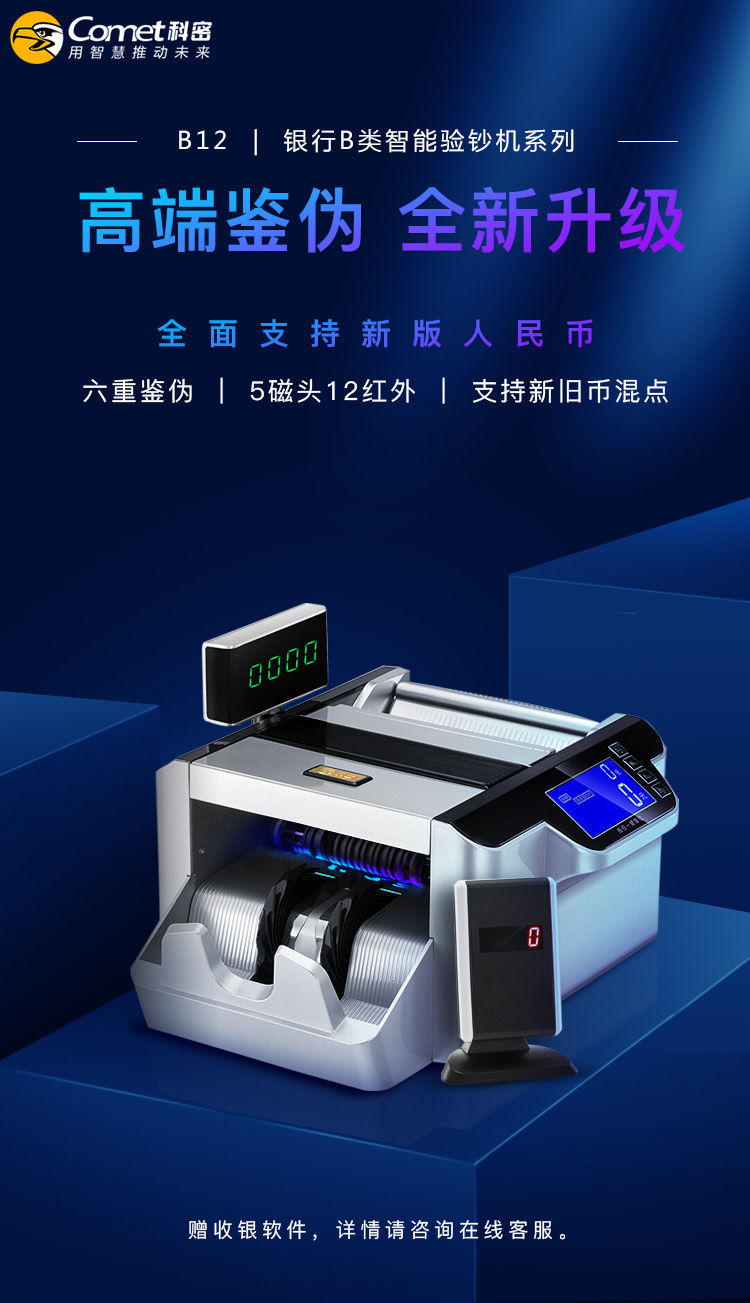 科密(comet)新版人民币点钞机 国标B类验钞点钞机 银行可用商用 新旧币混点三屏显示语音报警 B12