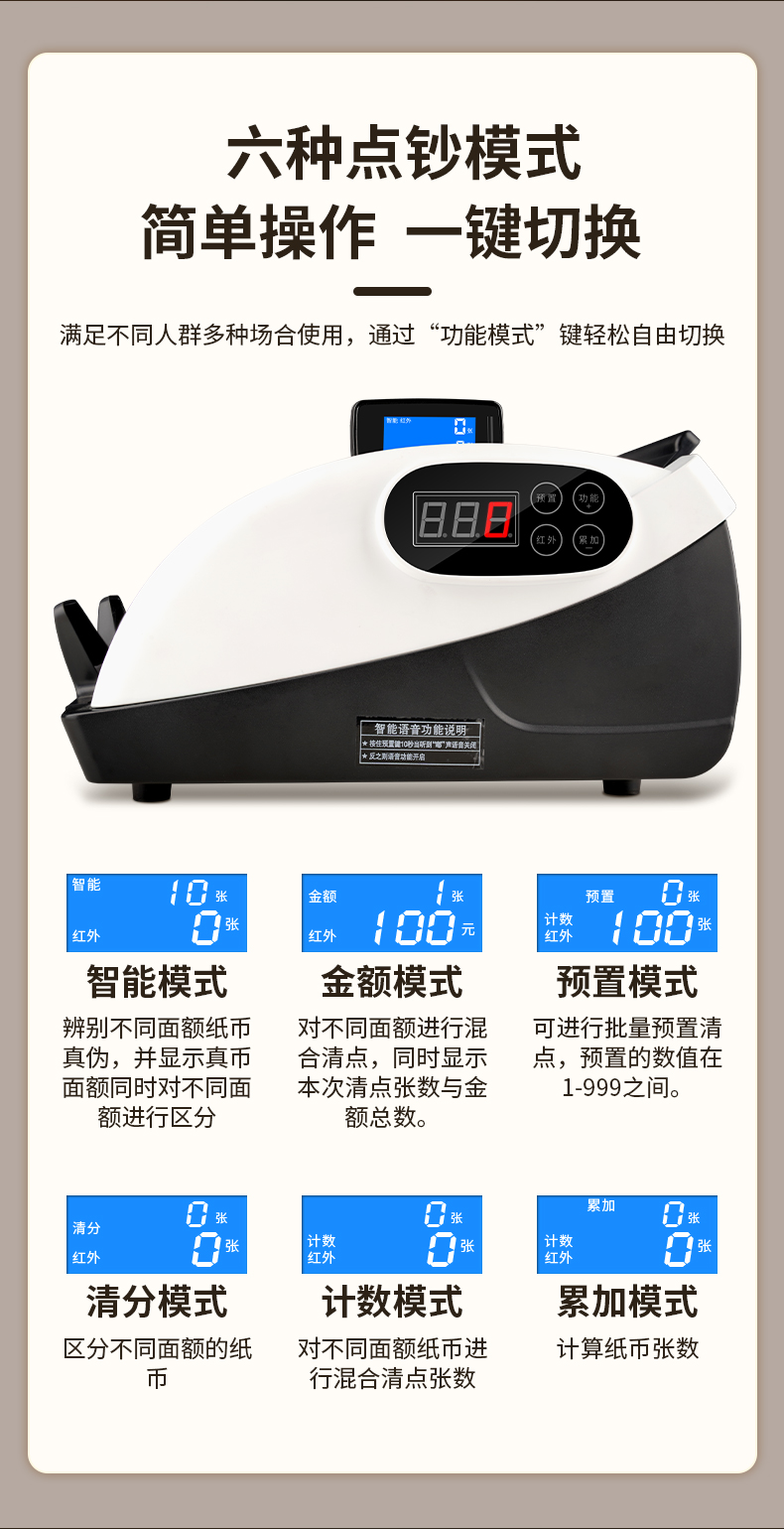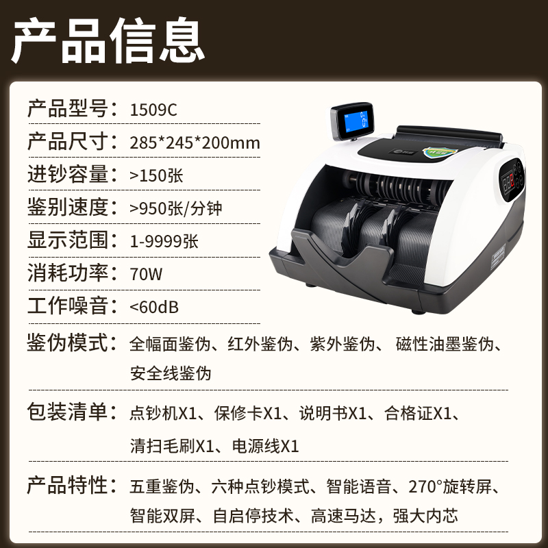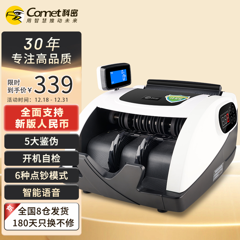 科密(comet)新版人民币验钞点钞机 双屏国标C级智能语音 收银支付小型家用商用验点钞机数钱机1509C