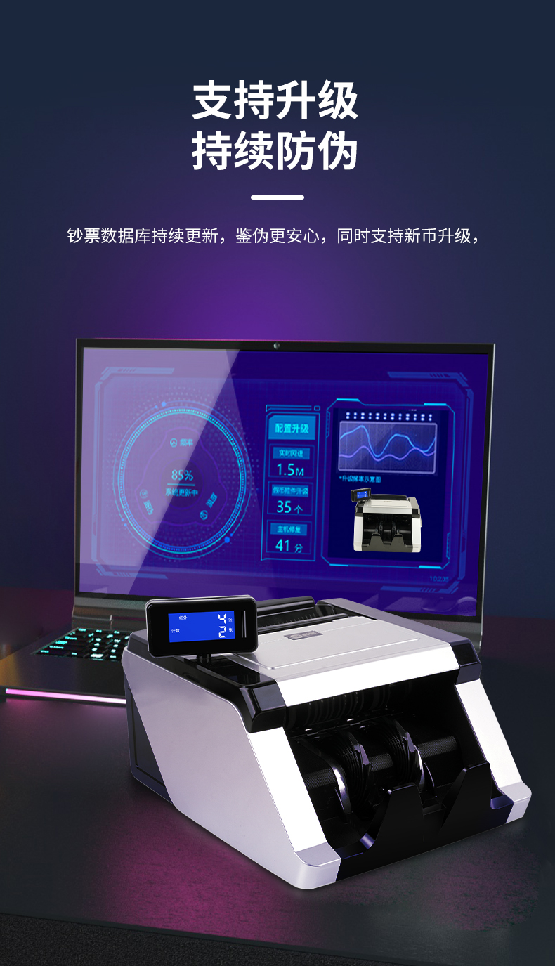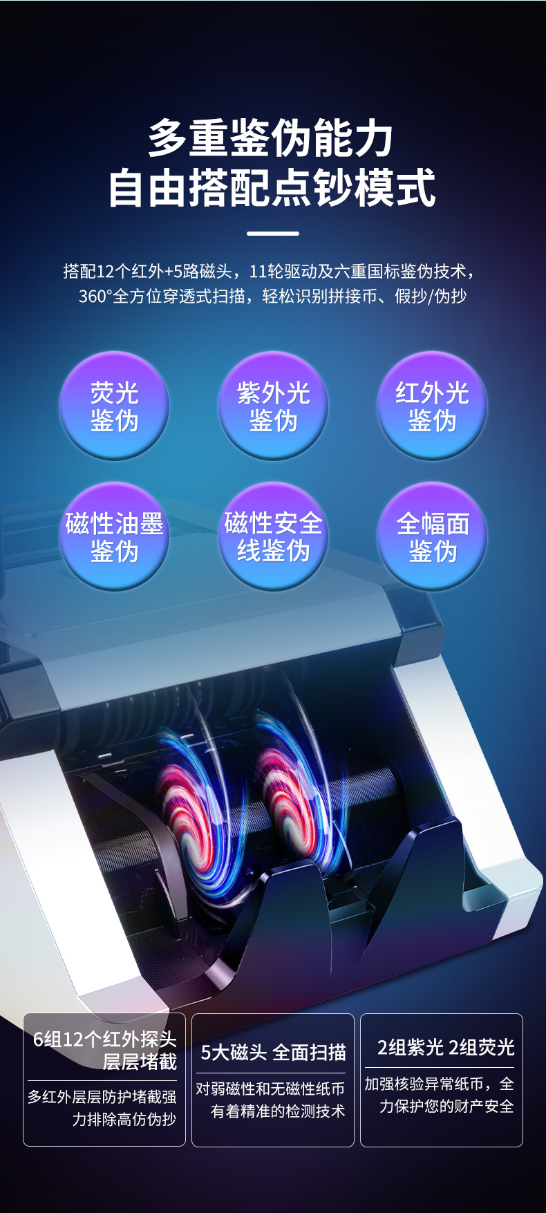 科密(comet)支持新版人民币 国标B类验钞点钞机银行可用 智能三屏商用家用收银支付语音3609(B)