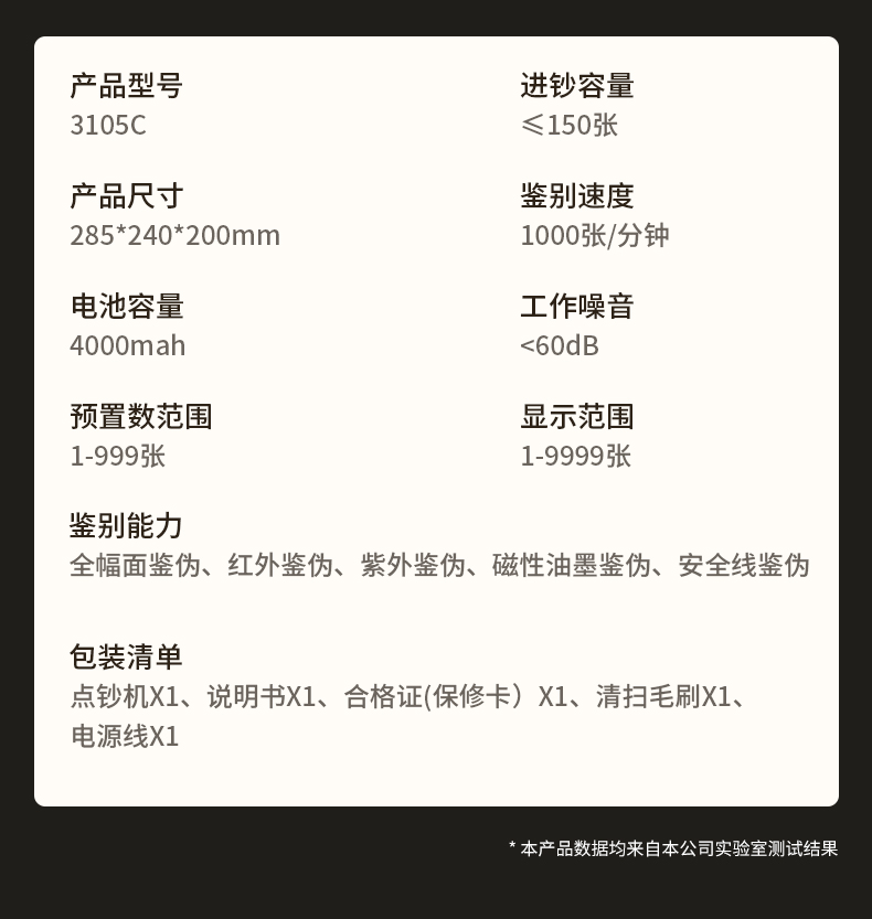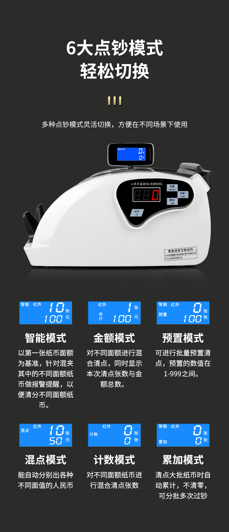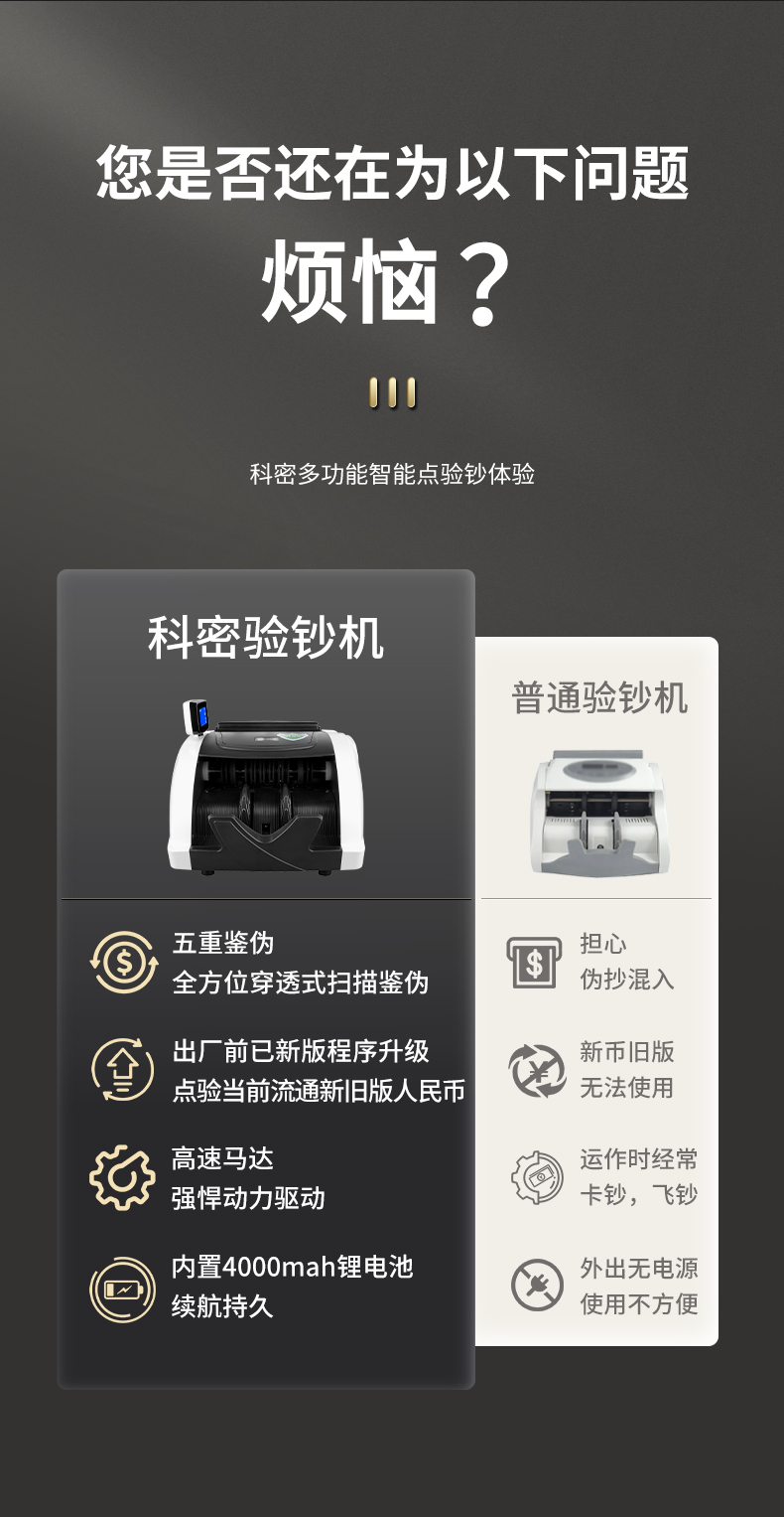 科密(comet) 验钞点钞机支持新版人民币 可充电便携收银家用商用 智能语音小型验钞数钞机3105C