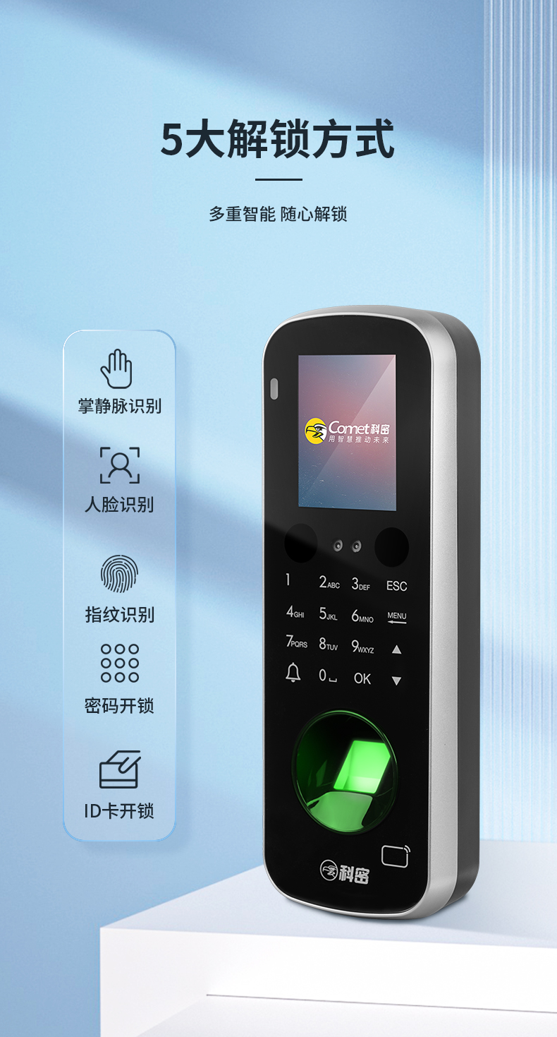 科密(comet) 门禁一体机 人脸识别考勤机打卡机 电插电磁锁门禁系统 人脸掌静脉指纹密码刷卡一卡通 MF-880P
