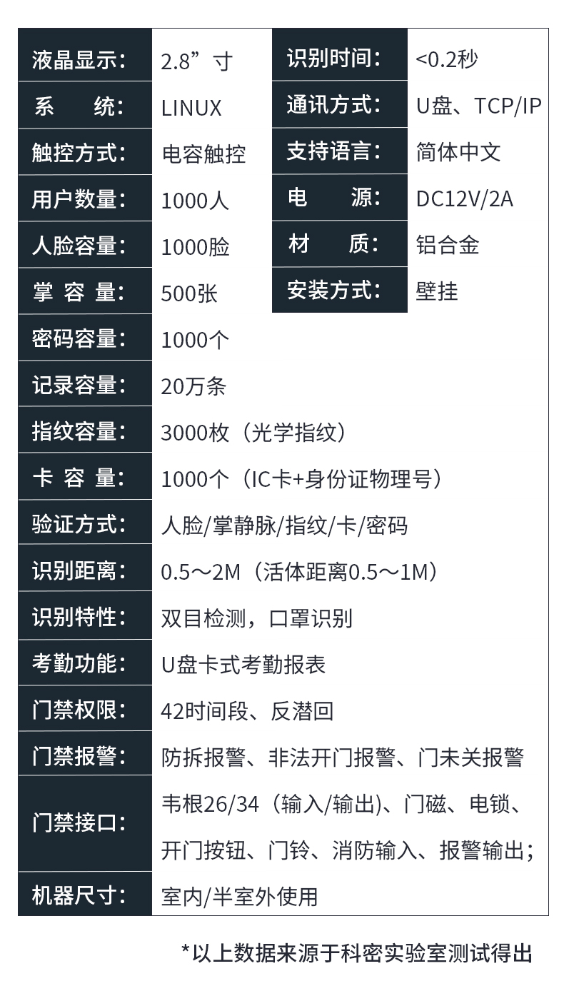 MF-880P科密门禁一体机