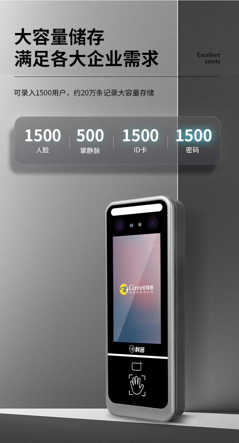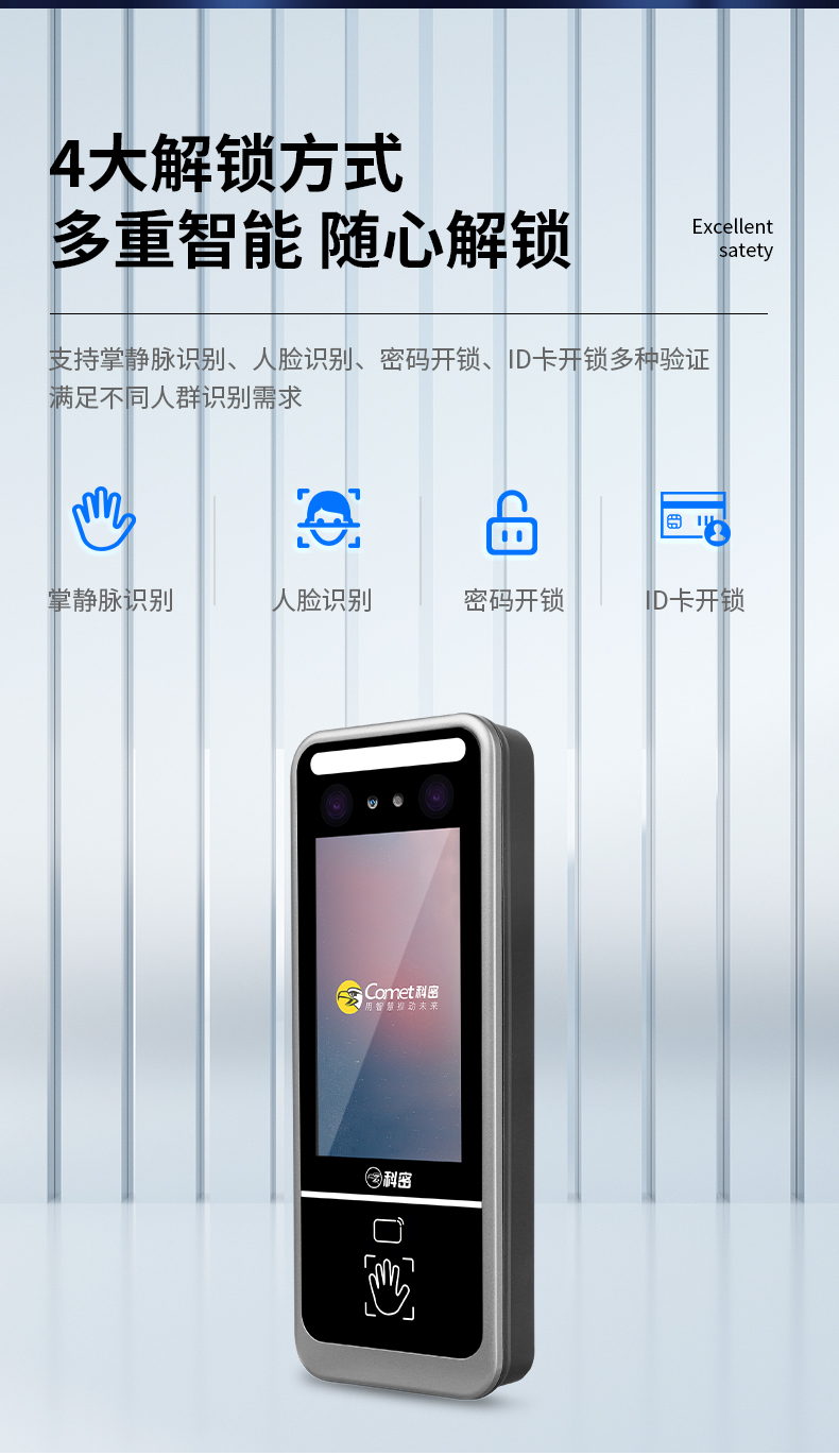 科密(comet) 人脸识别考勤机打卡机 门禁一体机 人脸掌静脉密码刷卡一卡通门禁一体机 MF-900D