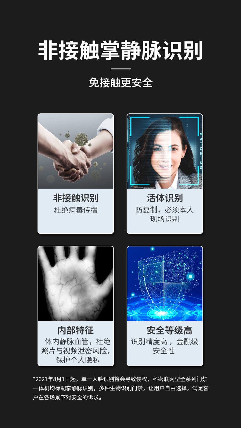 科密 人脸指纹识别考勤机打卡机 门禁一体机 人脸掌静脉指纹密码刷卡一卡通门禁一体机 MF-910C