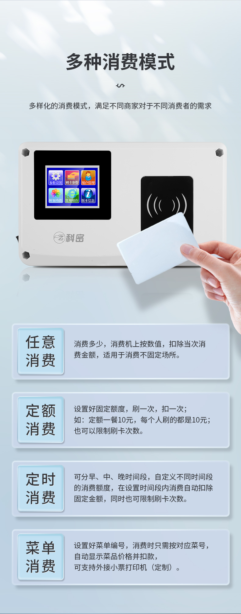 科密(comet)消费机XC-85T款食堂刷卡消费机饭堂餐厅IC卡收银机 工厂学校刷卡机 食堂挂壁版【XC-85TGB】