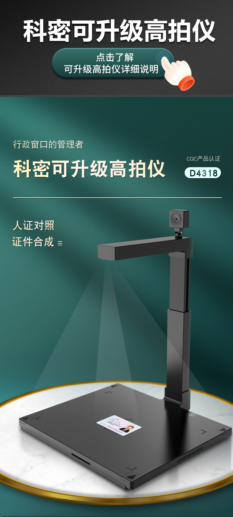 科密 D4318 高拍仪 1600万+500万高清像素 A3A4 身份证阅读器 OCR文件扫描仪