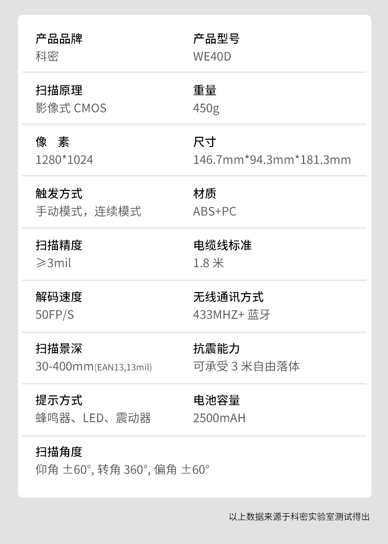 科密(comet)WE40D扫描枪无线蓝牙扫码枪 一二维码工业条码枪 生产制造仓储运输 高精度带座扫码器