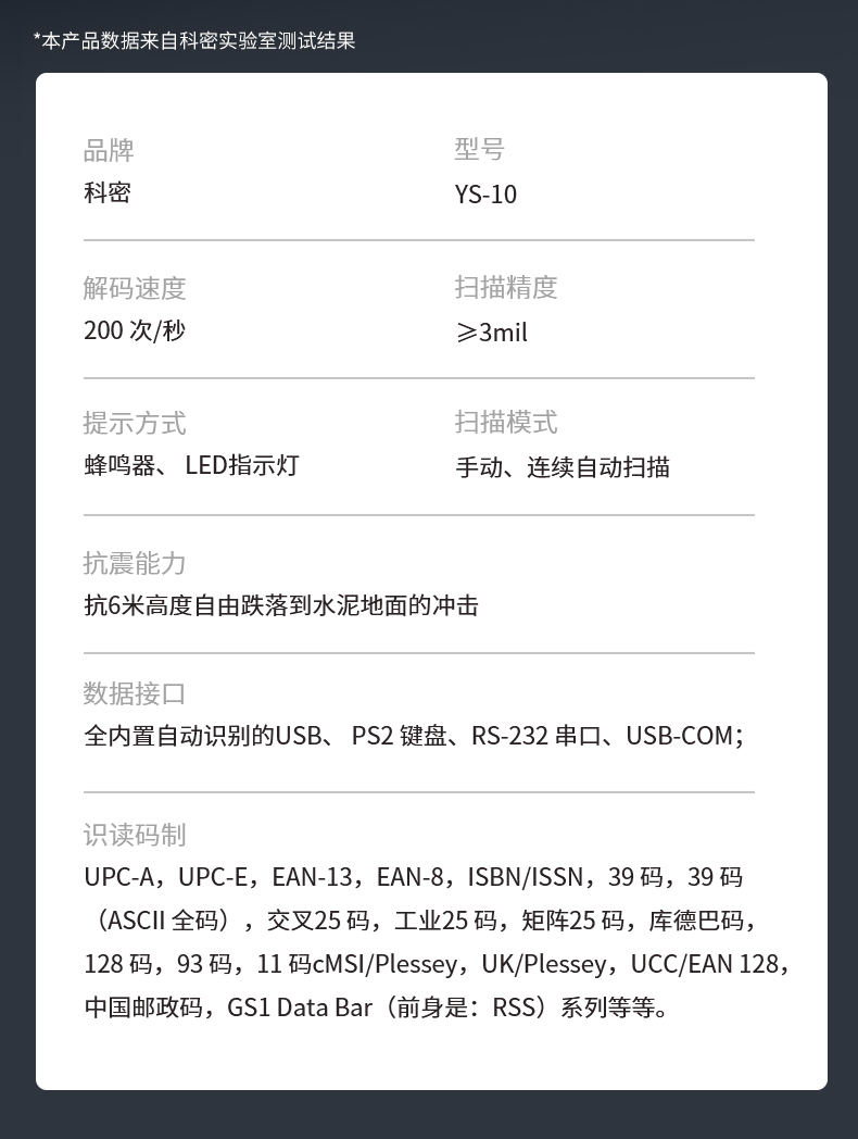 科密(comet)YS10 有线一维码扫描枪条码枪扫码枪 工业级防水防尘防油污 生产制造车间微小码【可定制】