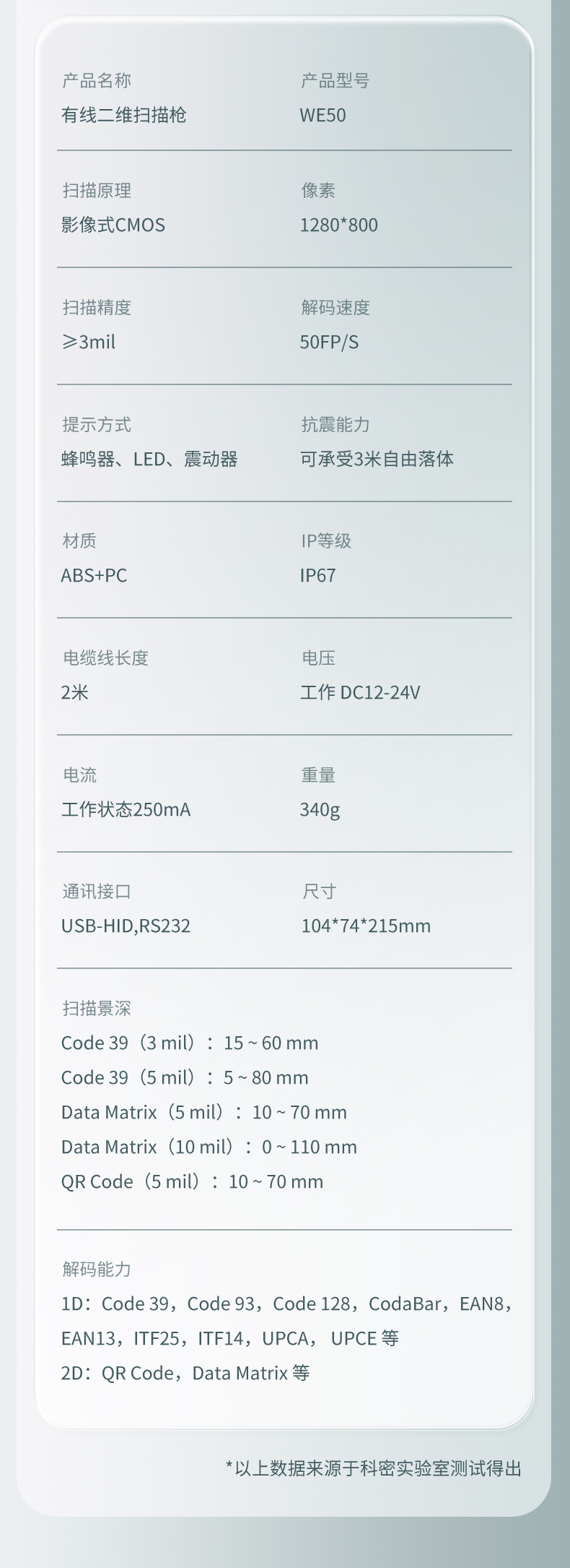 科密WE50扫描枪有线扫码枪 一二维码高密工业级条码枪 生产制造车辆仓储 金属雕刻DPM零件码