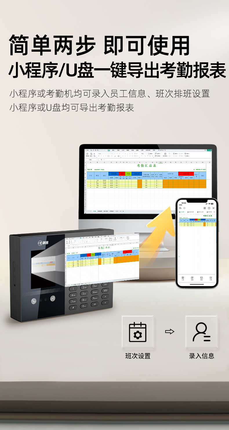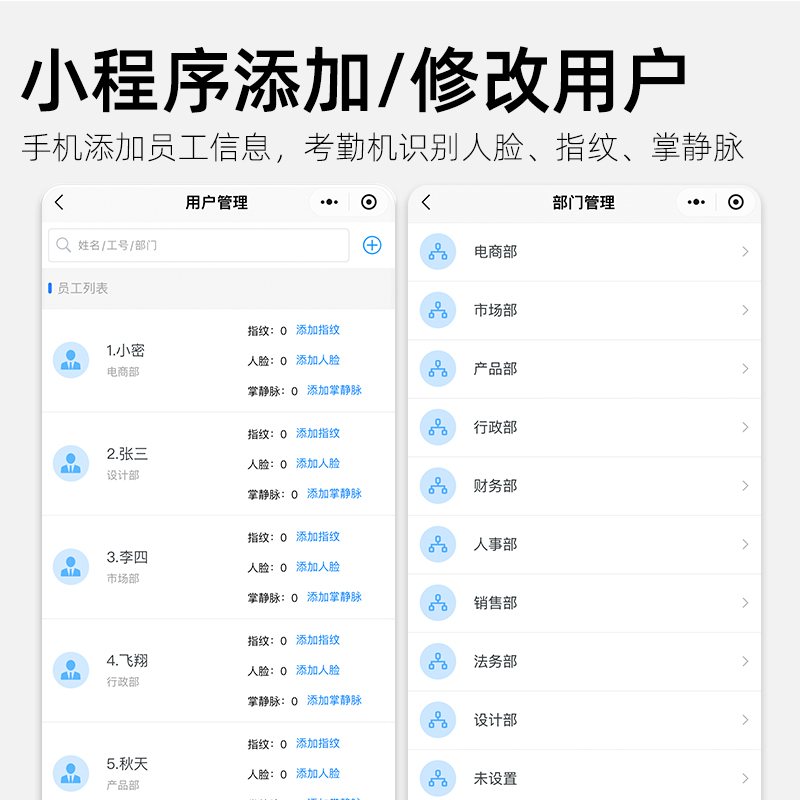 FC02W人脸+指纹+掌纹识别考勤机(蓝牙小程序版)