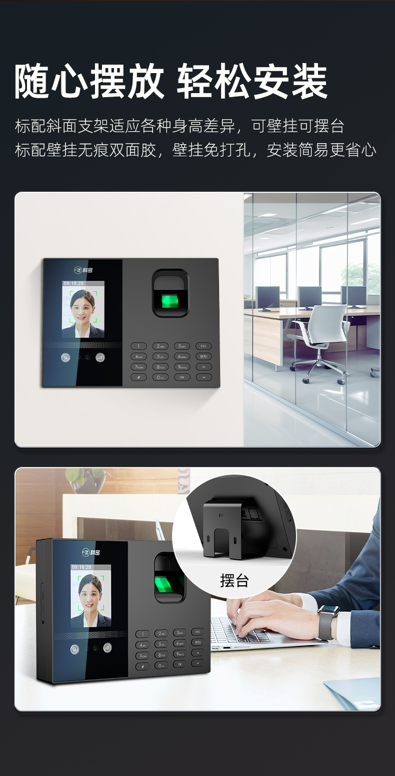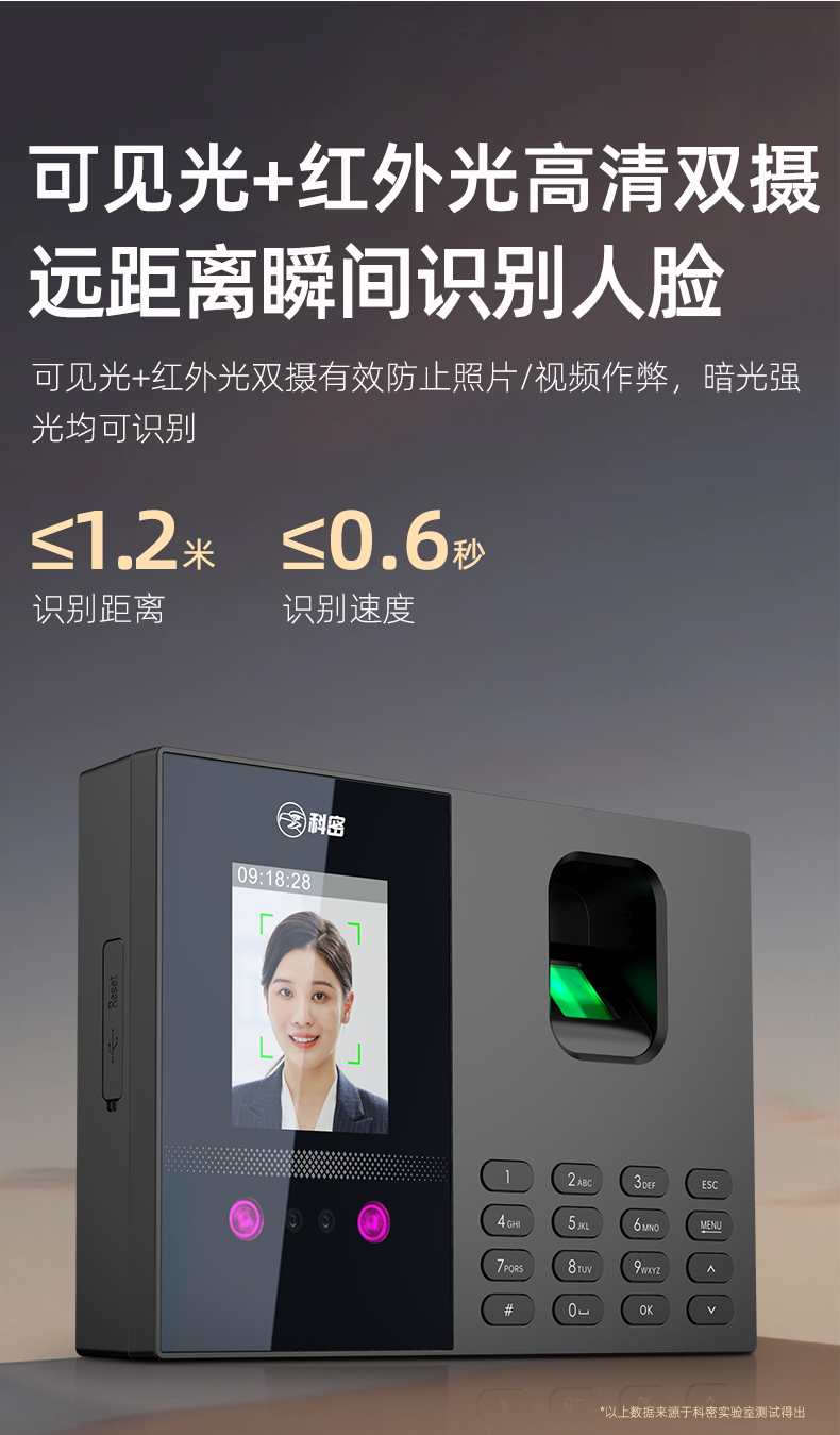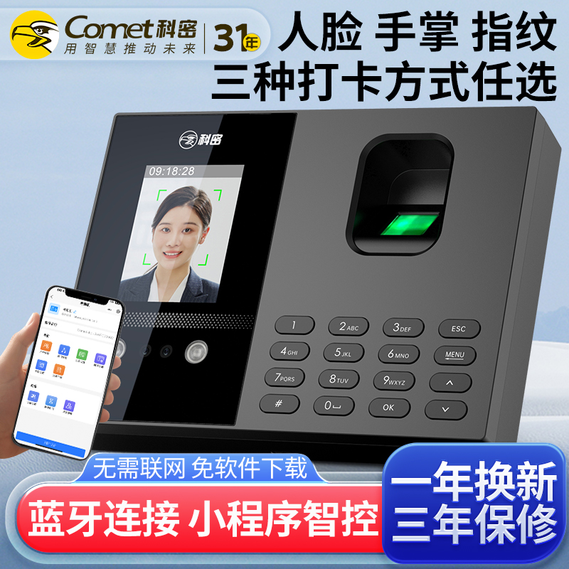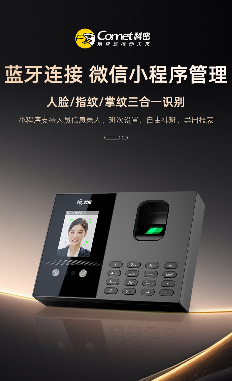 科密(comet)考勤机 打卡机人脸+指纹+掌纹识别考勤机 蓝牙连接 小程序管理 自动生成报表FC02W