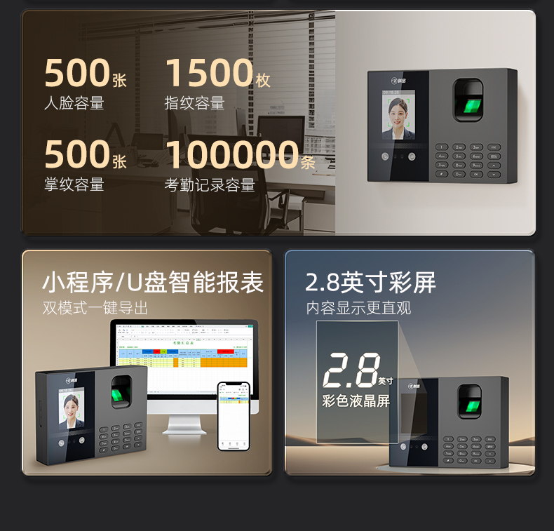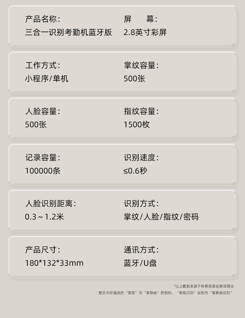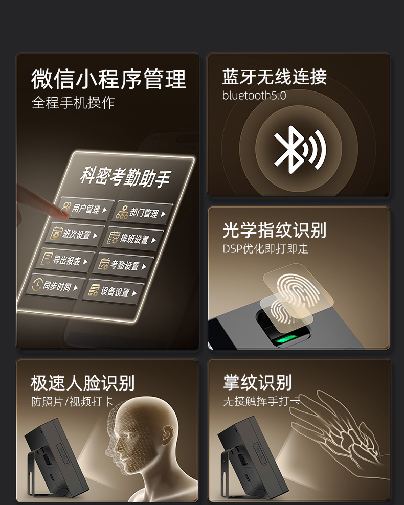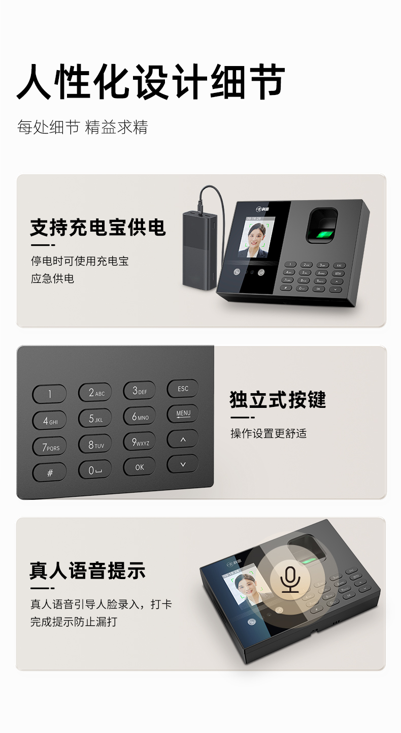 科密(comet)考勤机 打卡机人脸+指纹+掌纹识别考勤机 蓝牙连接 小程序管理 自动生成报表FC02W