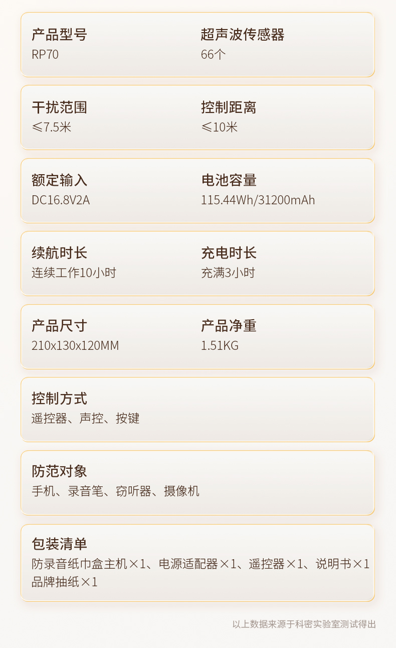 科密防录音干扰器录音笔手机防窃听设备监偷听视频录像屏蔽仪RP70