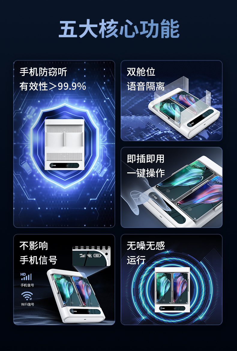 科密手机安全仓防监听防录音防手机木马远程实时监听收音RPMSE 白色