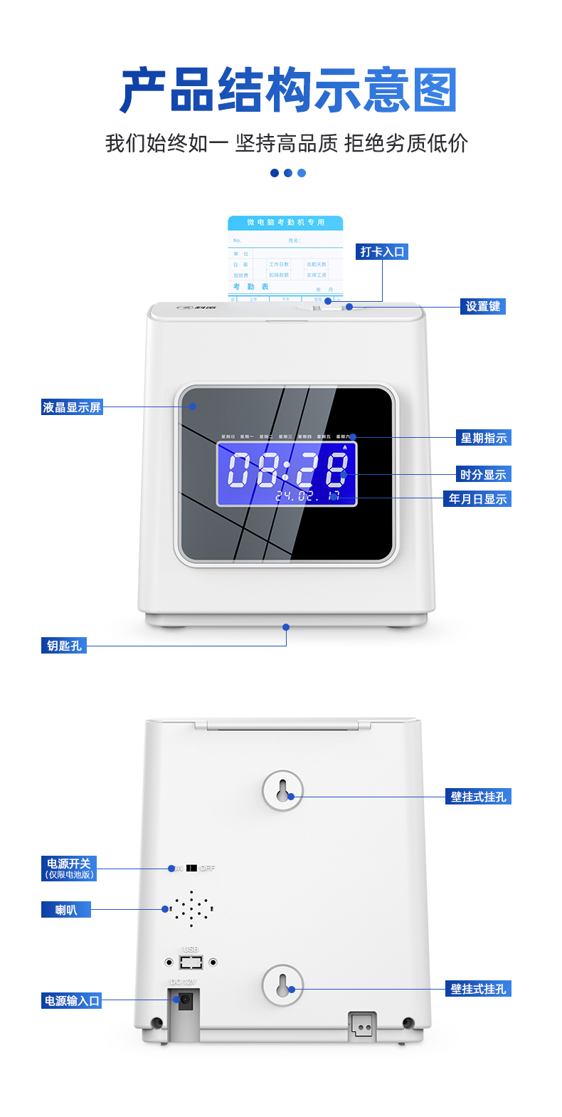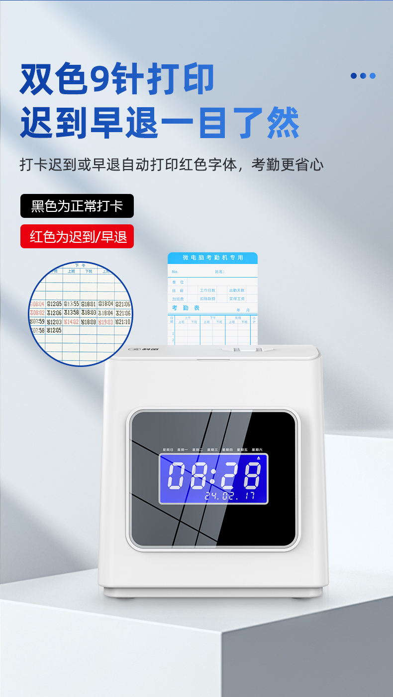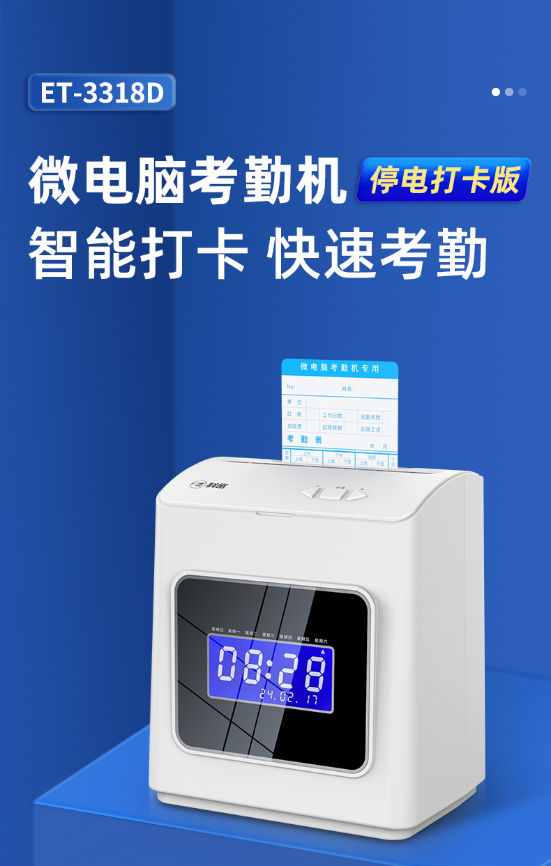科密(comet)打卡机考勤机卡钟纸质考勤钟音乐报时快速打卡微电脑自动吸退移位 可停电打卡款 ET-3318D